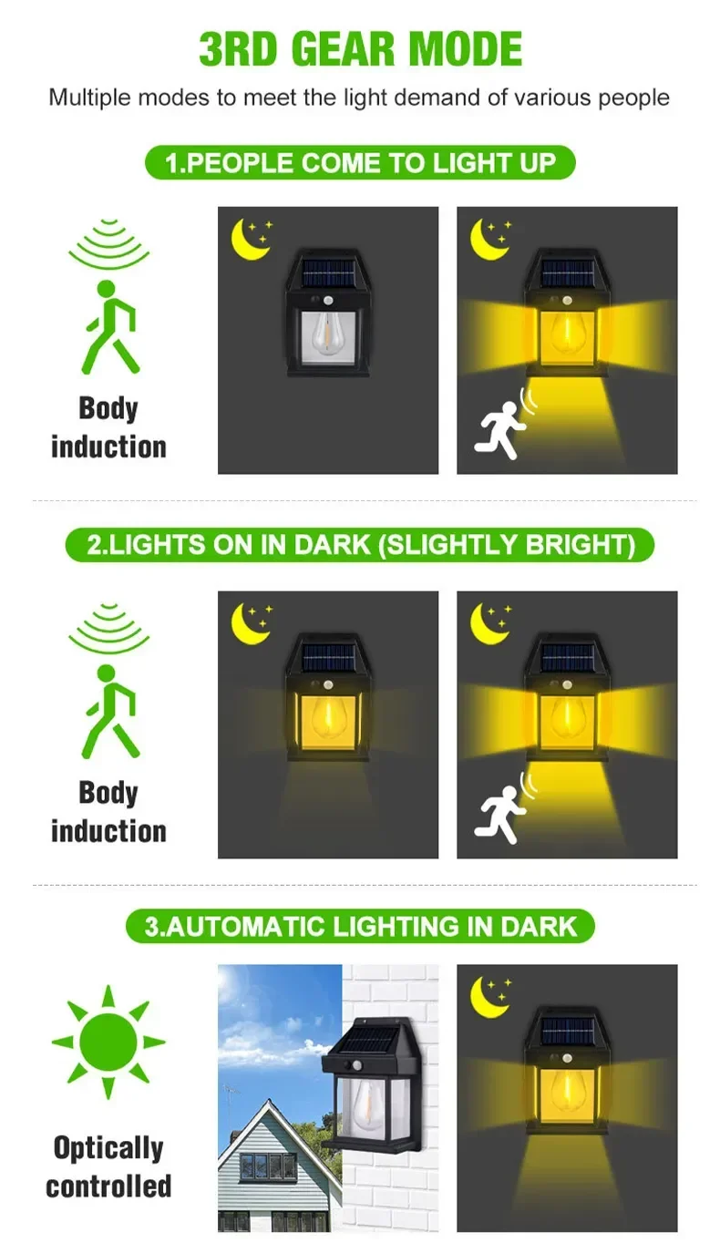 3. 2nd gears: The manned light illuminates strong light for 15 to 30 seconds, and then the unmanned light always illuminates weak light;