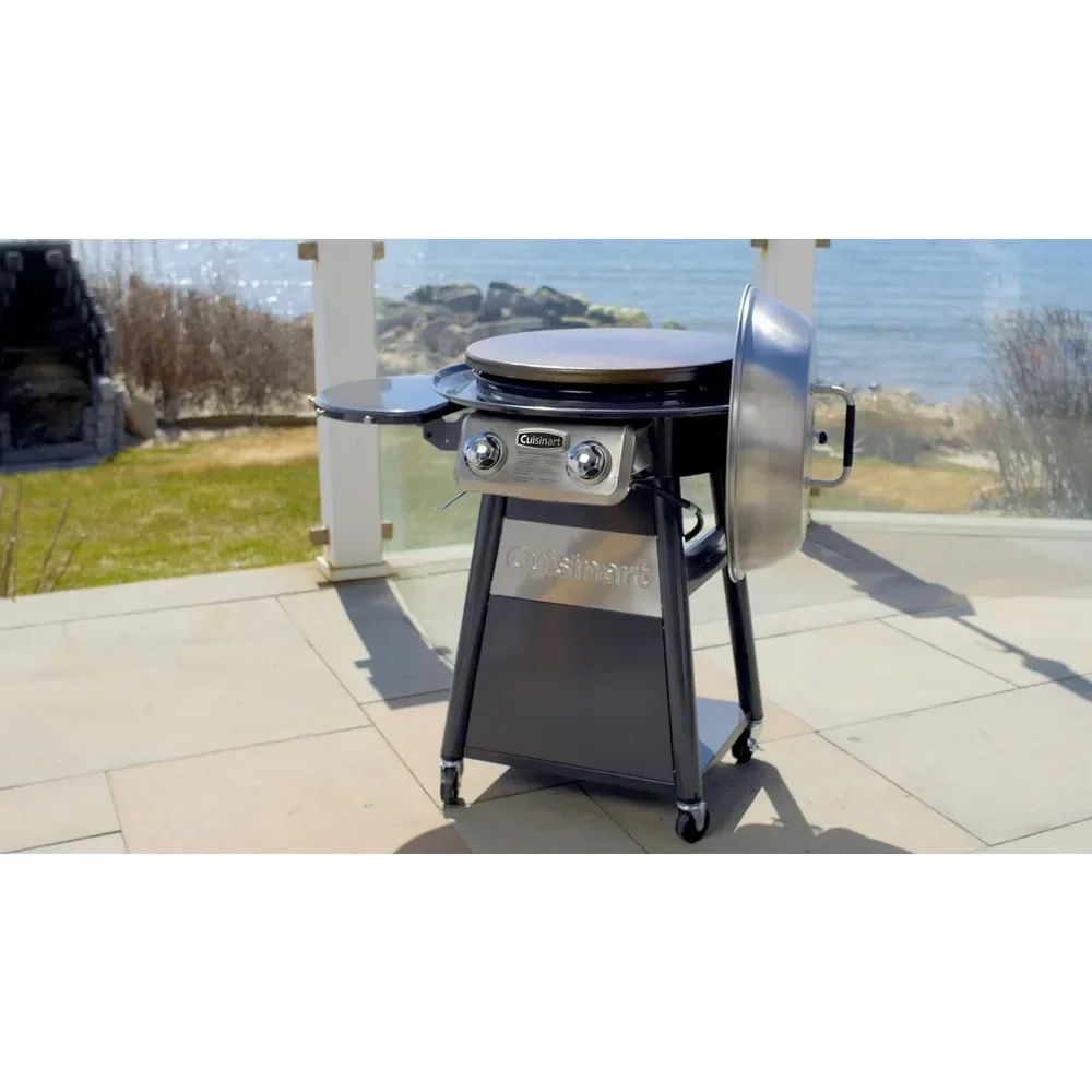 Experience 360° of griddle cooking versatility! Whether you are cooking for a small crowd or a large party, the Cuisinart 360° griddle cooking center will amaze any audience. Breakfast, lunch & dinner, the 22″ diameter cooking center can handle it all! It features a 360° grease pan & rear grease cup, making for easy access & clean-up. The cooking center comes with a quick access paper towel holder. It also includes a stainless steel lid with an integrated vent, enhancing the features of a normal griddle! This lid creates versatility to steam, roast, smoke or warm! From eggs & pancakes to burgers or stir-fry, the Cuisinart 360° griddle cooking center gives you the ability to explore your culinary creativity.