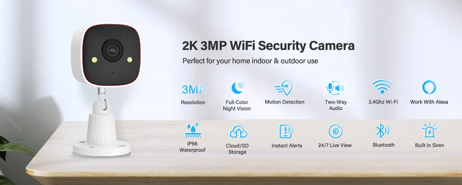Outdoor Wireless Security Camera 3MP 1296P,Camera with WiFi, Home Security Surveillance, Property Monitoring, Indoor Security