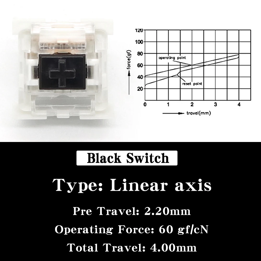 [Descriptions]The linear switching characteristic combined with an increased spring force triggers directly. Thanks to a stronger spiral spring, the tried and true Outemu Black Switch smoothly moves the keys back to the starting position and grants the necessary staying power for long writing and gaming sessions.