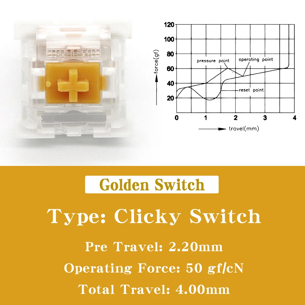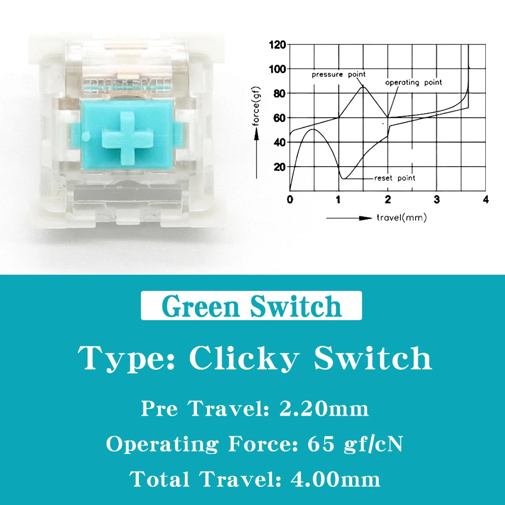 [Descriptions]Similar to Outemu Blue Switch, the operating force is heavier than Outemu Blue Switch, with an eye-catching “click” sound and the rebound is more powerful. Can be used on big keys.