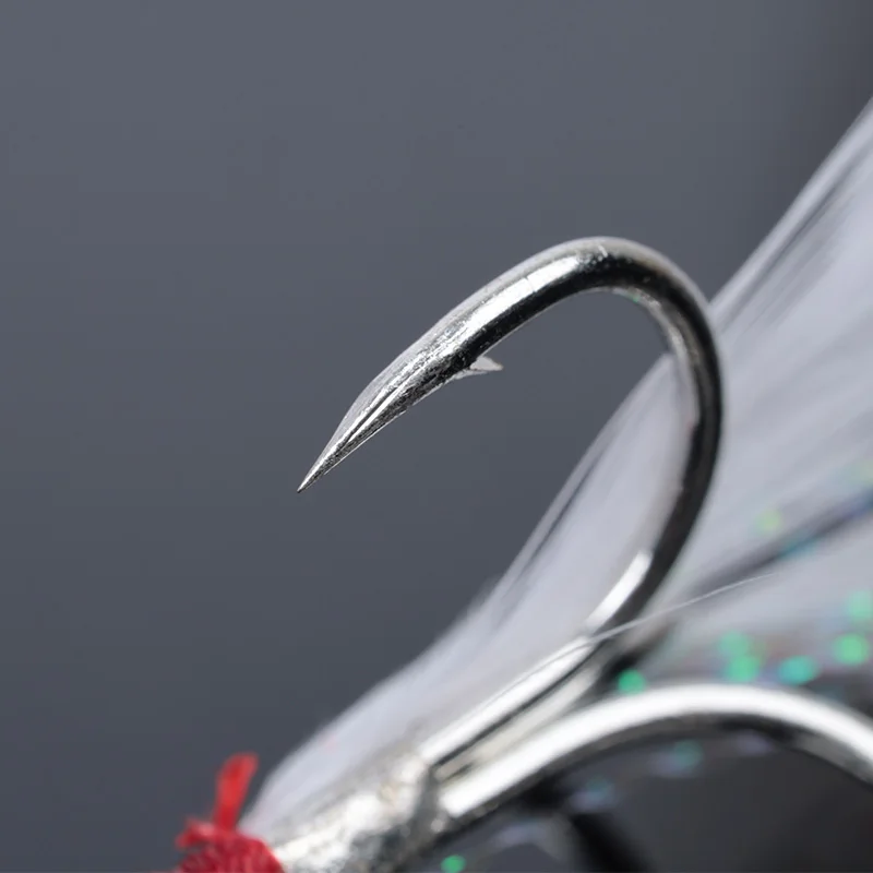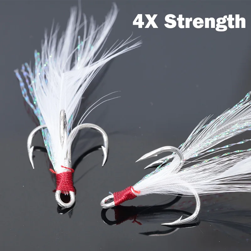 Description :OUTKIT 10pcs Lure Treble Hooks 4X Strength With Feather Tackle Fishing Hook Stronger Carbon Steel Barbed Fishhooks Pesca