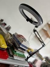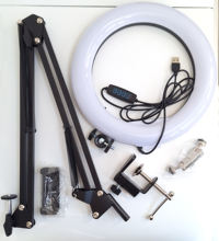 Looks good, like the photos. The metal is sturdy but still has versatile angles, which is what I was looking for! Arrived with a few detachable "heads" to change for your needs. Can be use with and without the Ring light. The light works good, has a USB plug. I plugged it into the electricity with a charger head for my phone originally. All light modes work :) I think it's a good item for the price!