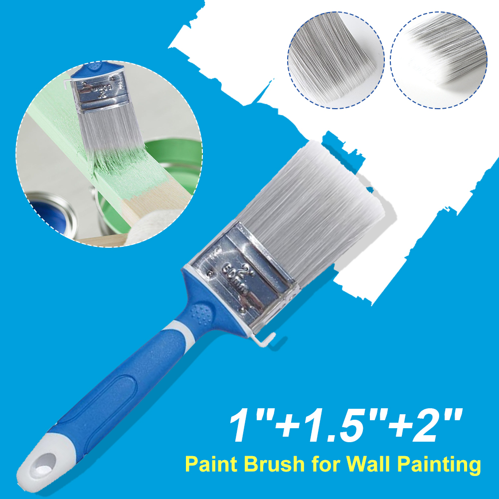 *4. High-quality – Durable synthetic bristles are encapsulated in rust-proof stainless steel ferrules to ensure dimensional stability and low wear. Rubber plastic handle with anti-slip small pieces, comfortable and firm in the hand. Bucket hooks and hanging holes provide convenience for painting and subsequent brush drying.
