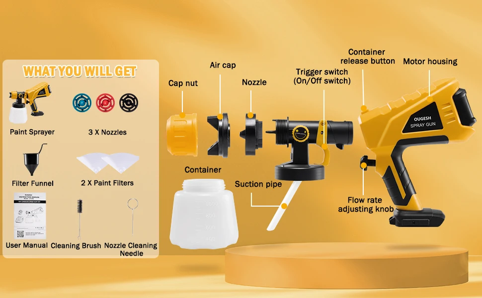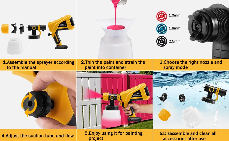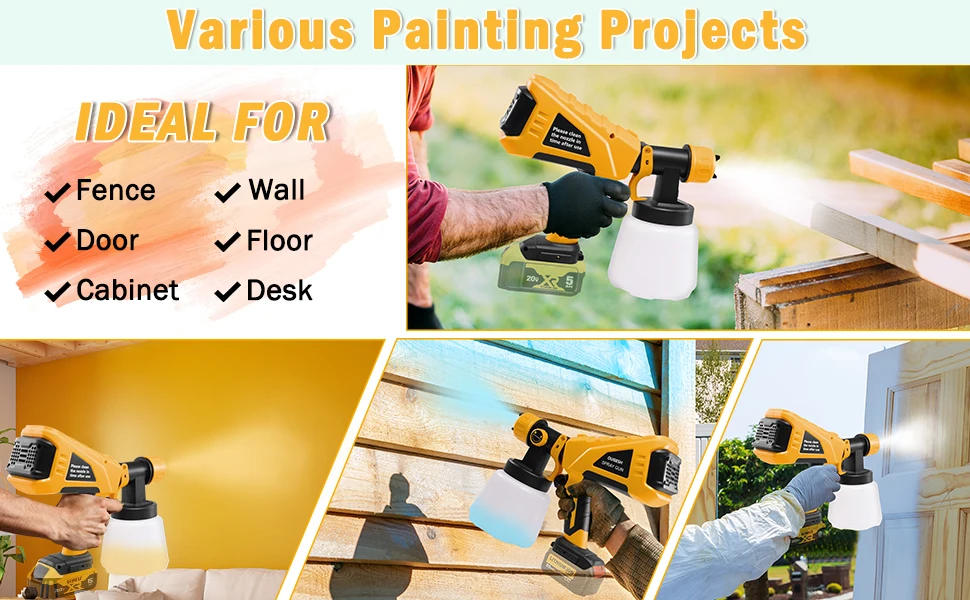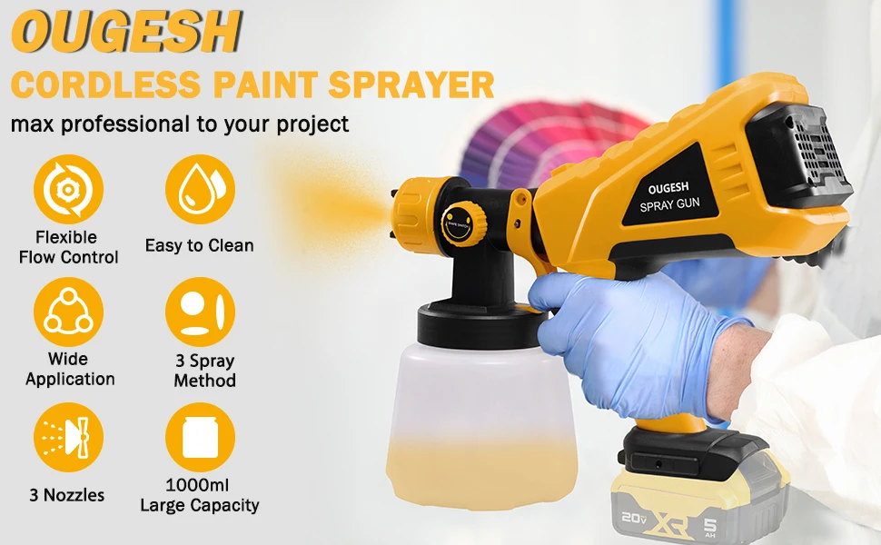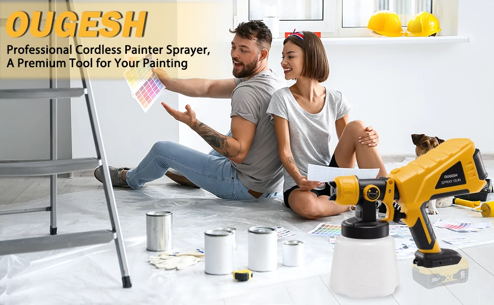 OUGESH Cordless Paint Sprayer provides a better and faster finish effects on your projects than brush or roller.