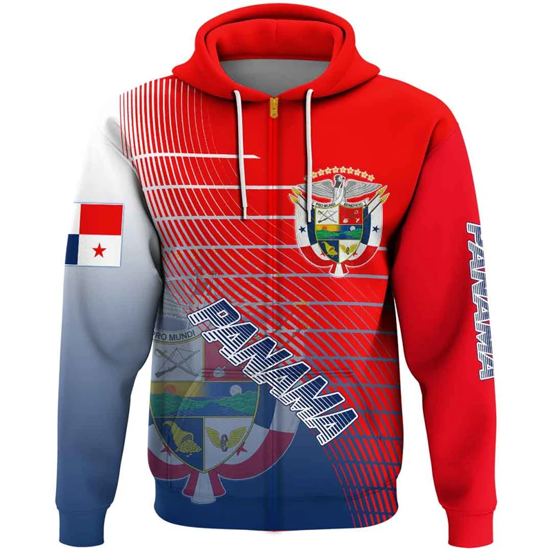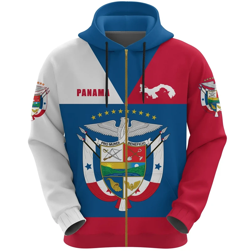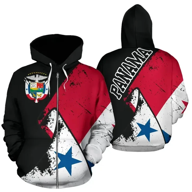 Panama Flag Map 3D Printed Zip Up Hoodies For Men Clothes National Emblem Hoody Tracksuit Fashion Boy Zipper Hoodie Women Tops