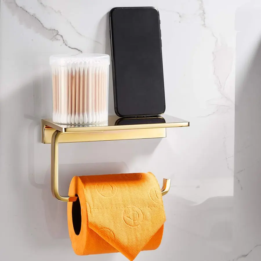Storage shelf to hold various items such as cell phone, book, cup or other small items to free your hands to do more interesting things while you are in bathroom.