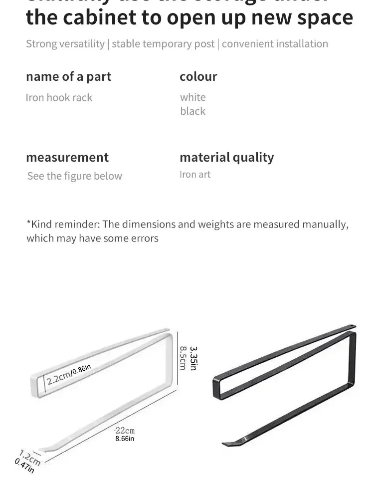 2、Save space: Can be fixed vertically, horizontally, and slides into the under shelf of a cabinet or cupboard, it won’t take up much space.