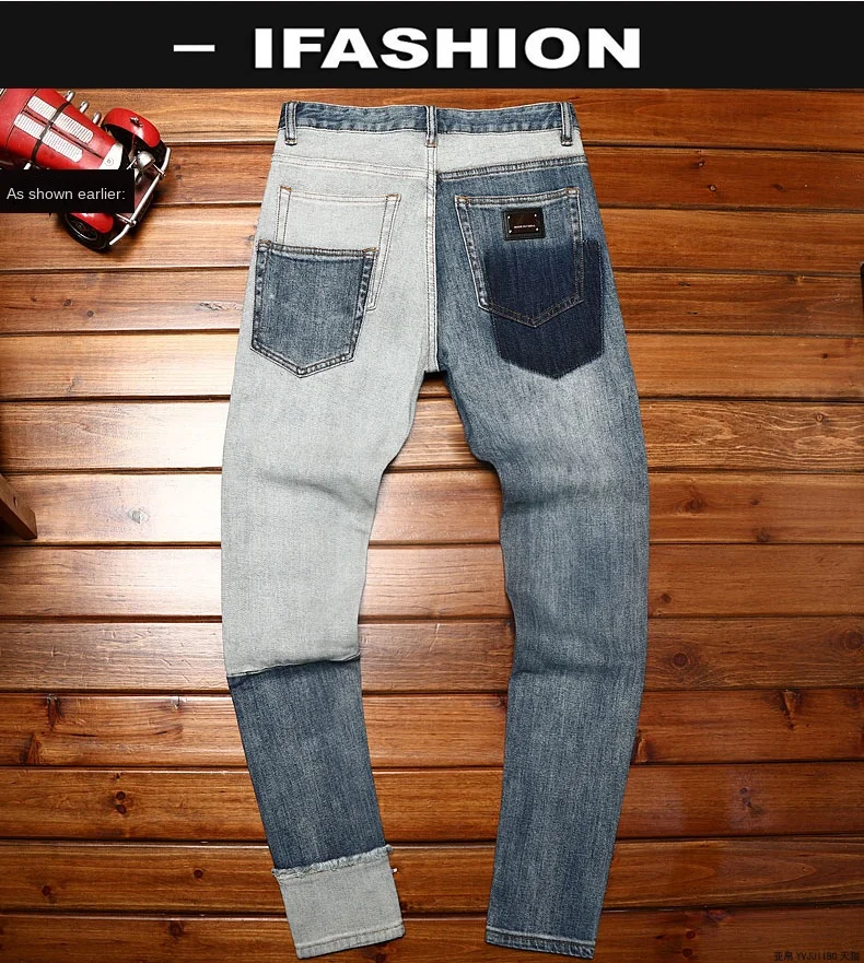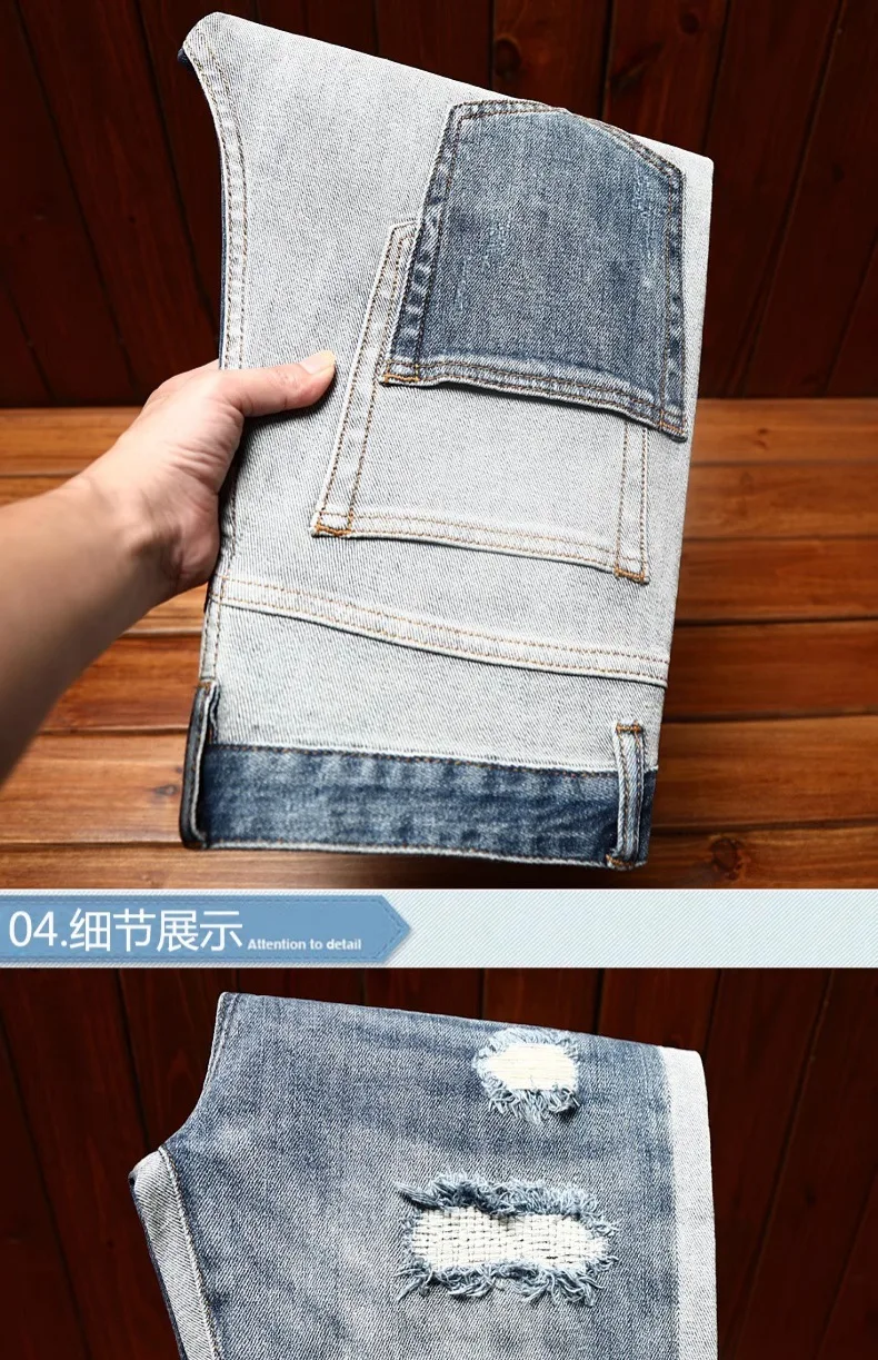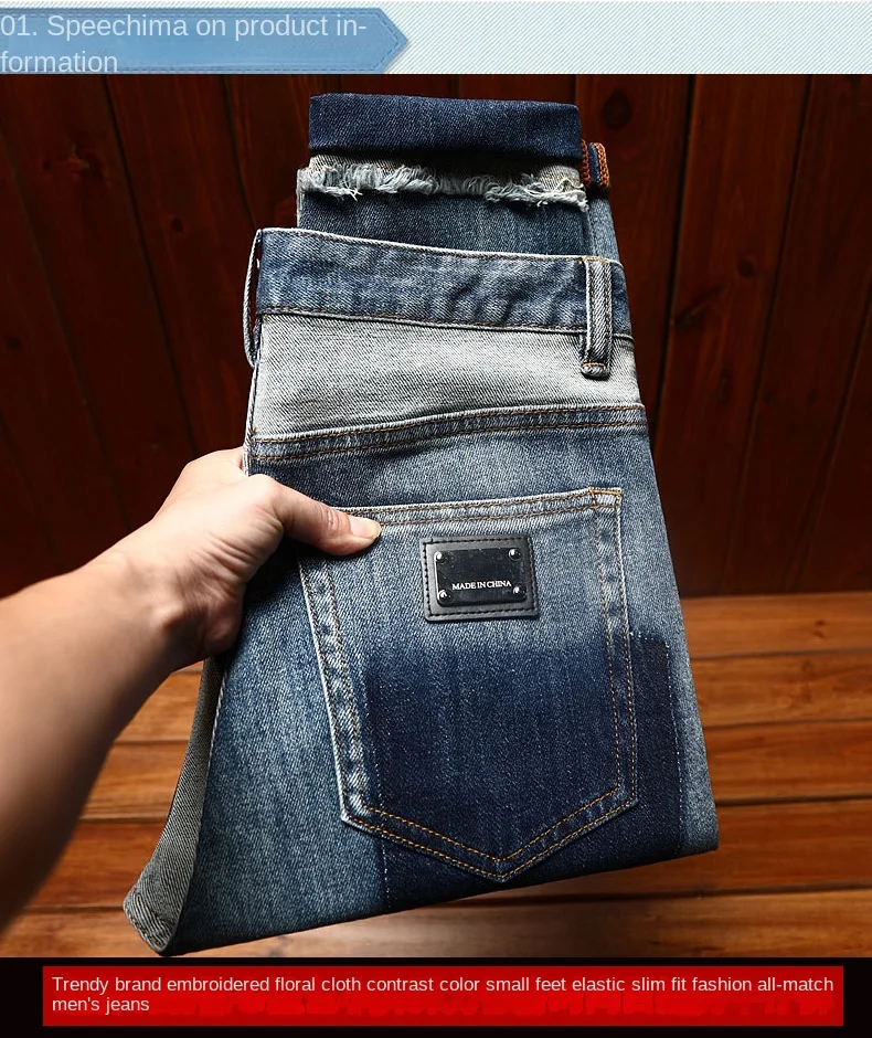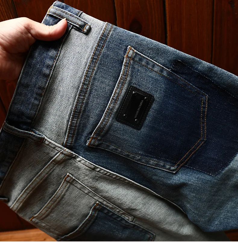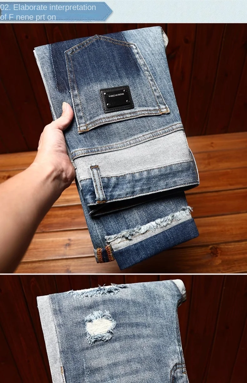 Patchwork Patch Jeans Men’s Personalized Trendy Slim Fit Skinny Pants Casual Motorcycle Men’s Spring and Autumn Ripped Trousers