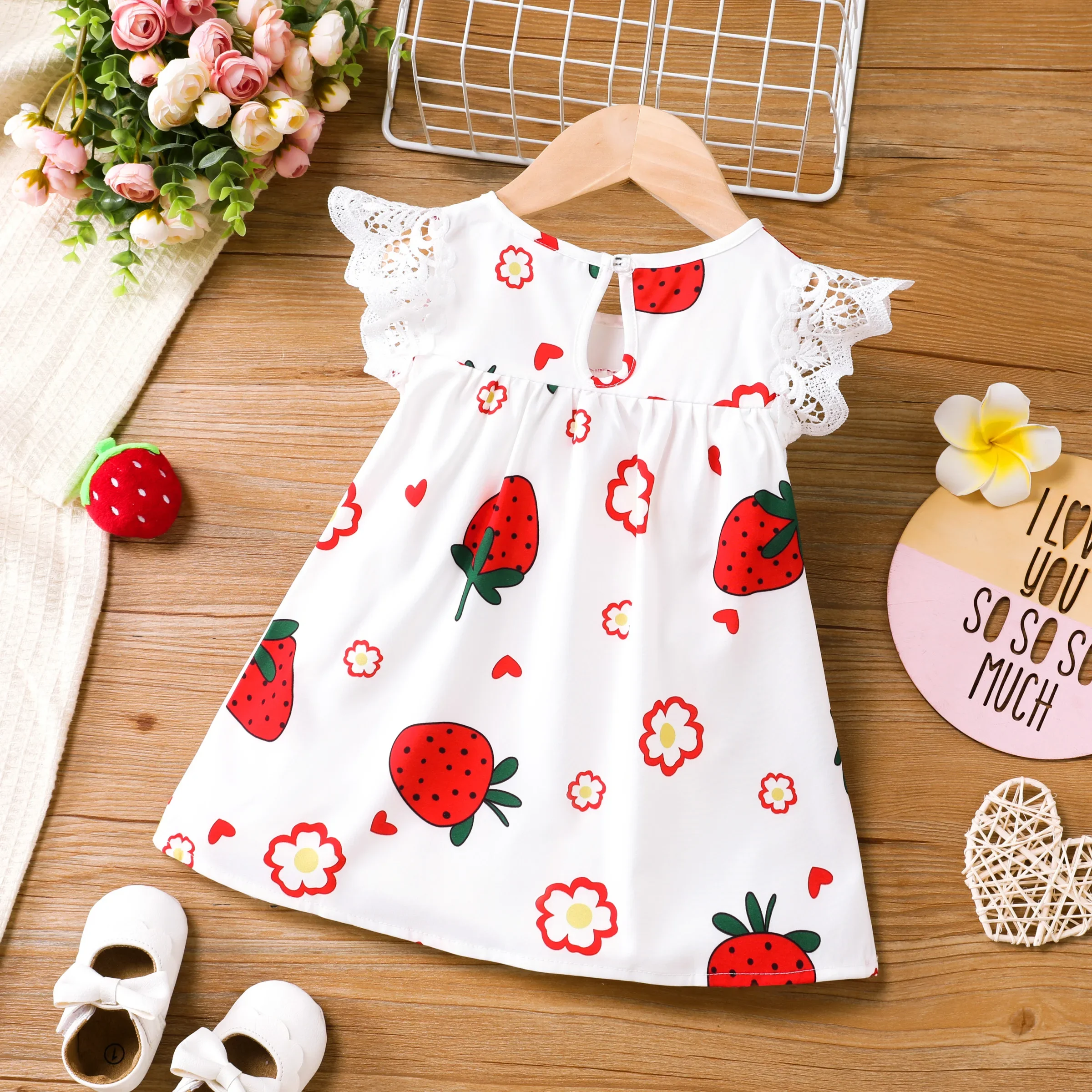 Product Introduction: Adorable and playful lace dress for baby girls. Perfect for everyday outings. Fabric: Made of 100% polyester, soft and comfortable. Care Instruction: Machine washable, low temperature drying. Key Features: * Product features: Lace decoration, cute and playful. * Fabric characteristics: Soft and comfortable, perfect for delicate skin. * Piece of product: One-piece dress. * Neckline: Round neckline. * Sleeves: Sleeveless. * Style: Playful and cute * Fit: Regular fit. * Length: Knee-length. * Source of goods: Imported. * Supplier: PatPat. Additional Information: Suitable for summer season and daily outings. Playful and cute design.
