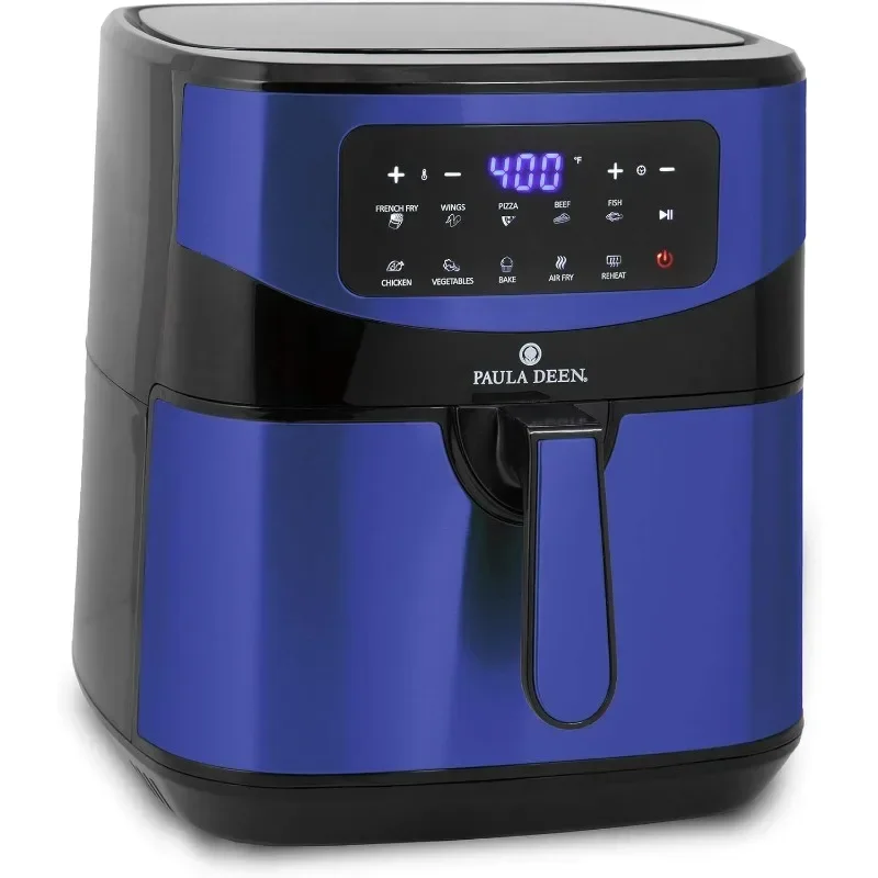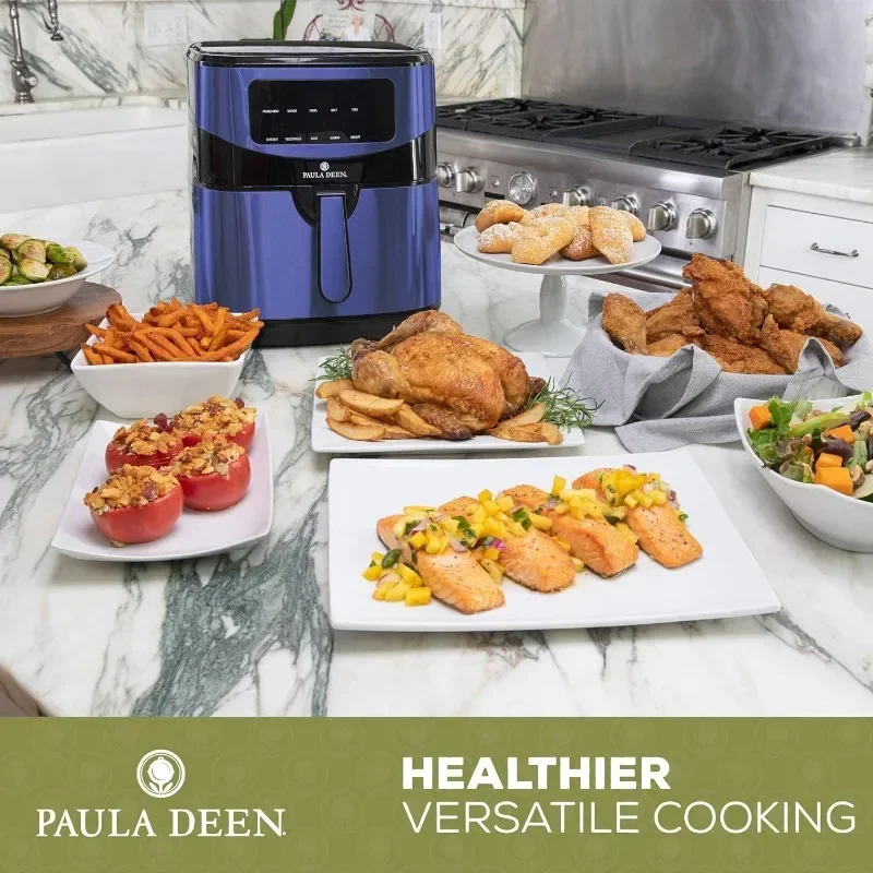 Paula Deen Stainless Steel 10 QT Digital Air Fryer (1700 Watts), LED Display, 10 Preset Cooking Functions, Ceramic Non-Stick Coating, Auto Shut-Off, 50 Recipes (Blue Stainless)