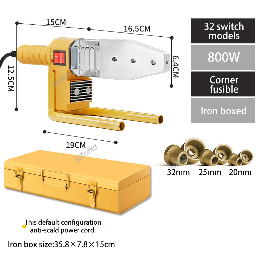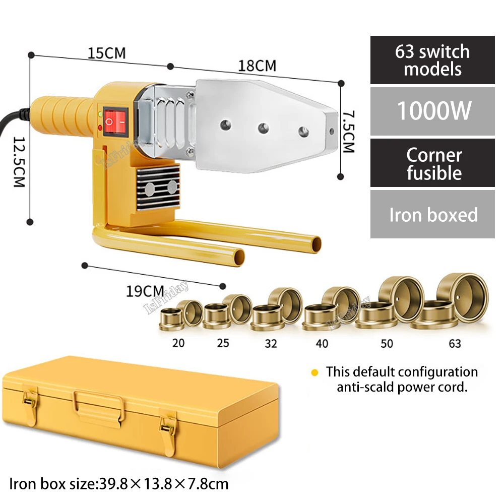 PB/PP/PE/PPR Pipe Welding Machine 600W-1000W pvc pipe soldering iron Plastic Welding Heating Hot Melting Tool 63/32Type Abrasive