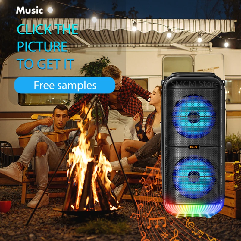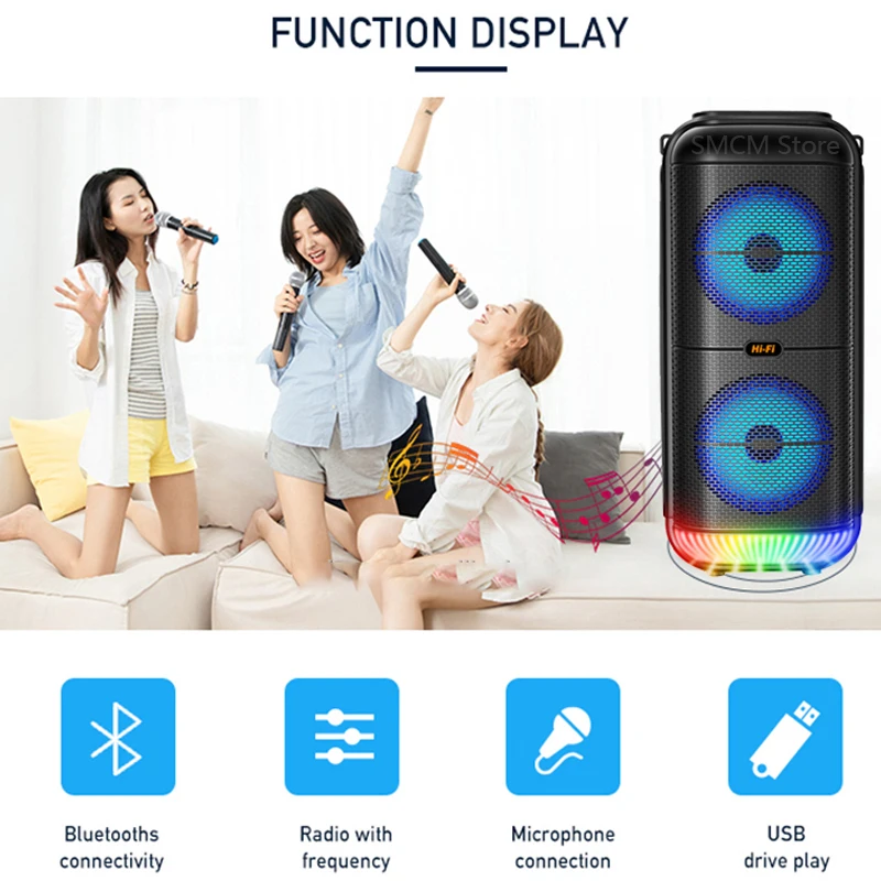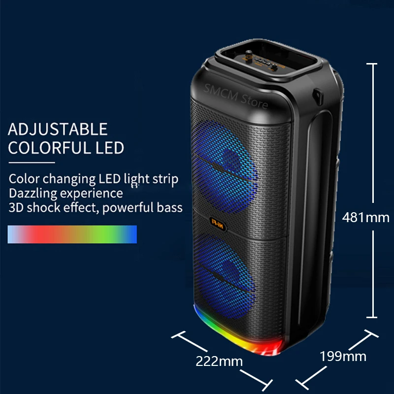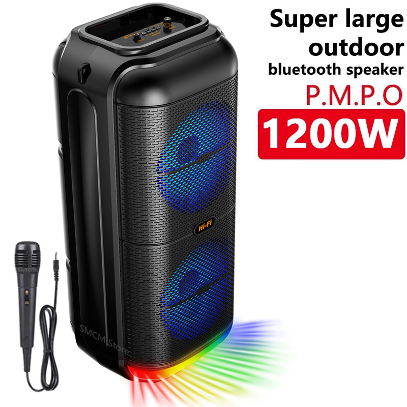 Peak Power 1200W Super Large Outdoor Bluetooth Speaker 6 Inch Double Horn Subwoofer Portable Wireless Column Bass Sound with Mic
