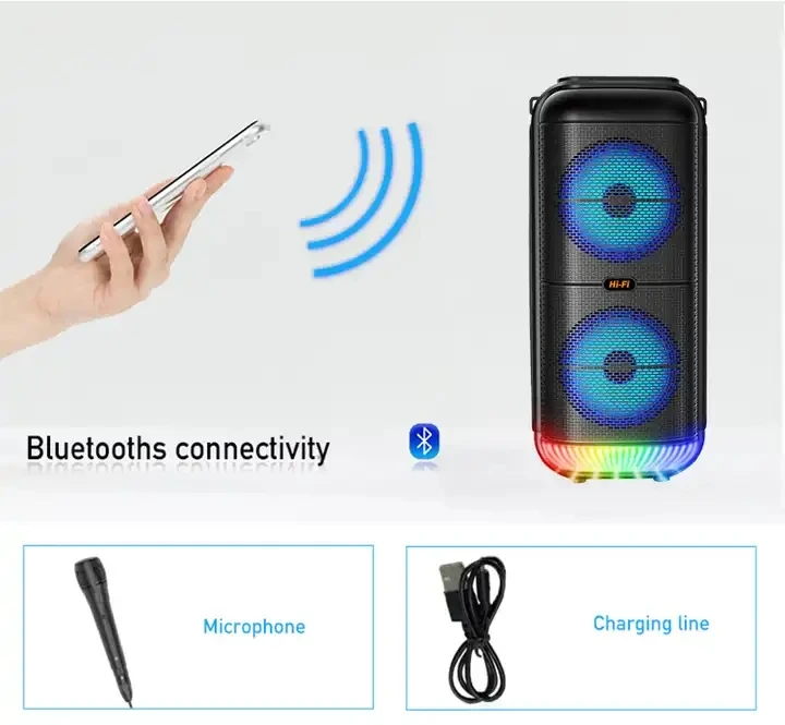 New dual speaker portable outdoor karaoke square dance Bluetooth sound system with heavy bass and high volume surround, shocking RGB color lights