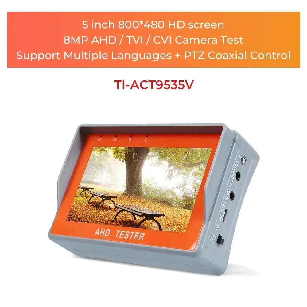 PEGATAH 8MP 4K CCTV Tester Security Camera 5 Inch TFT LCD Monitor for 4 IN 1 TVI AHD CVI Analog Security Cam Tester Video Test