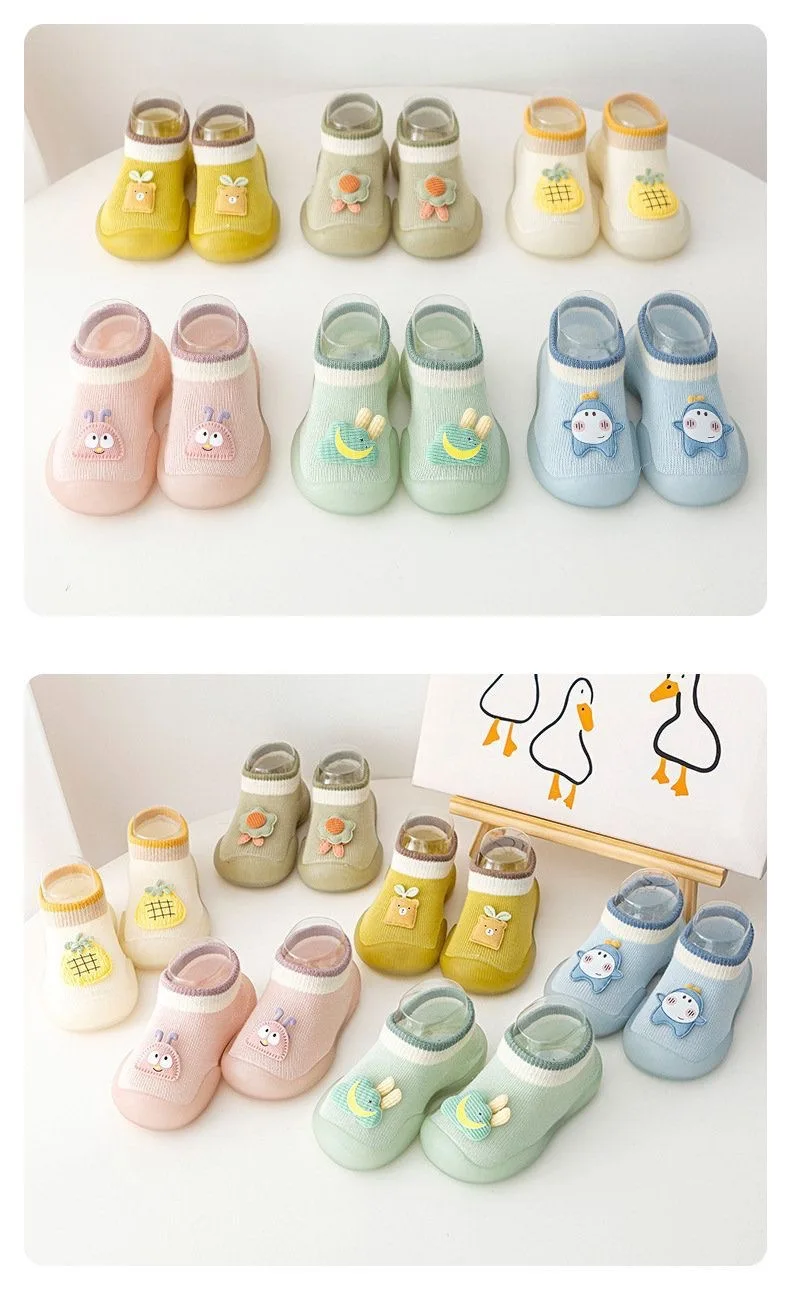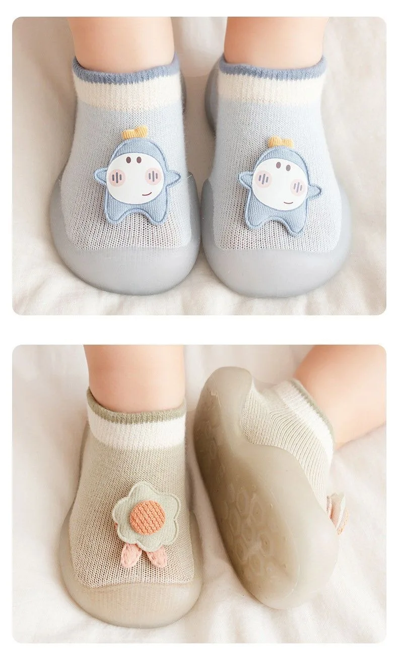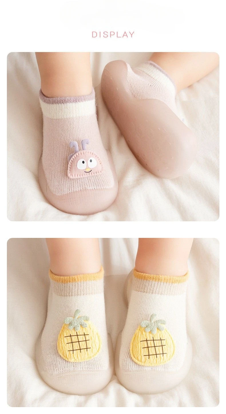 I love these little shoes sock and rubber on the sole. Are super practical and comfortable. They look cute on their feet.