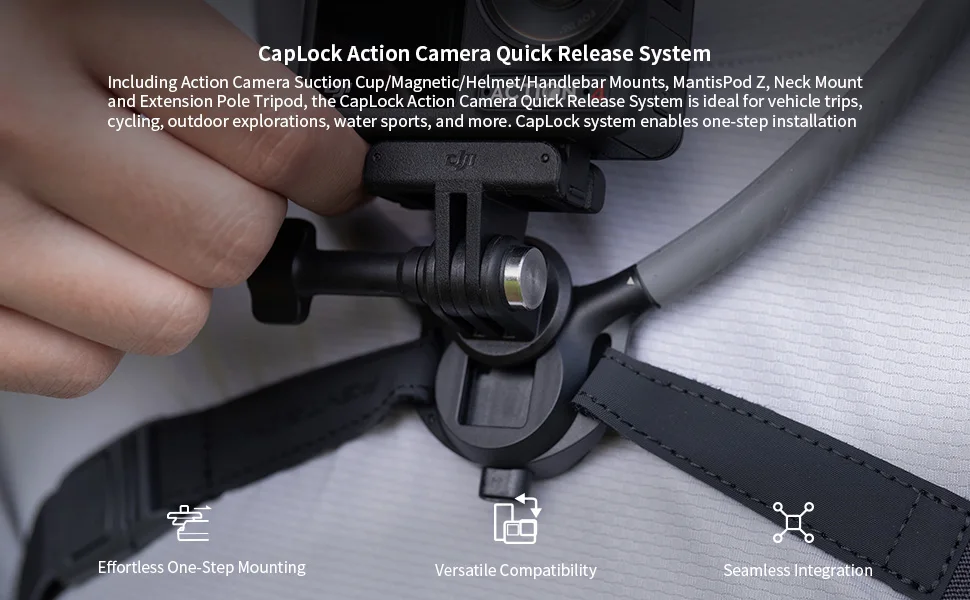 Experience the new CapLock Action Camera Quick Release System – one step mount and unparalleled stability. The quick-release plate supports four-way installation, enabling both landscape and portrait shooting. Elevate your visual storytelling from now!