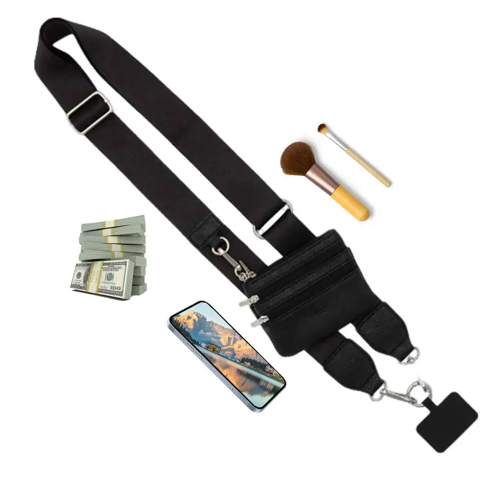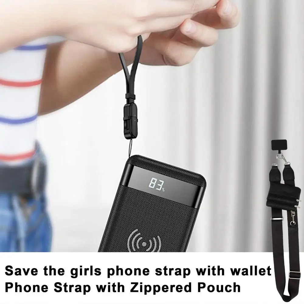 Phone Strap With Zippered Pouch For Women, Adjustable Cellphone Lanyard Crossbody With Wallet ,Clip And Go Strap For Phone