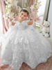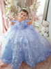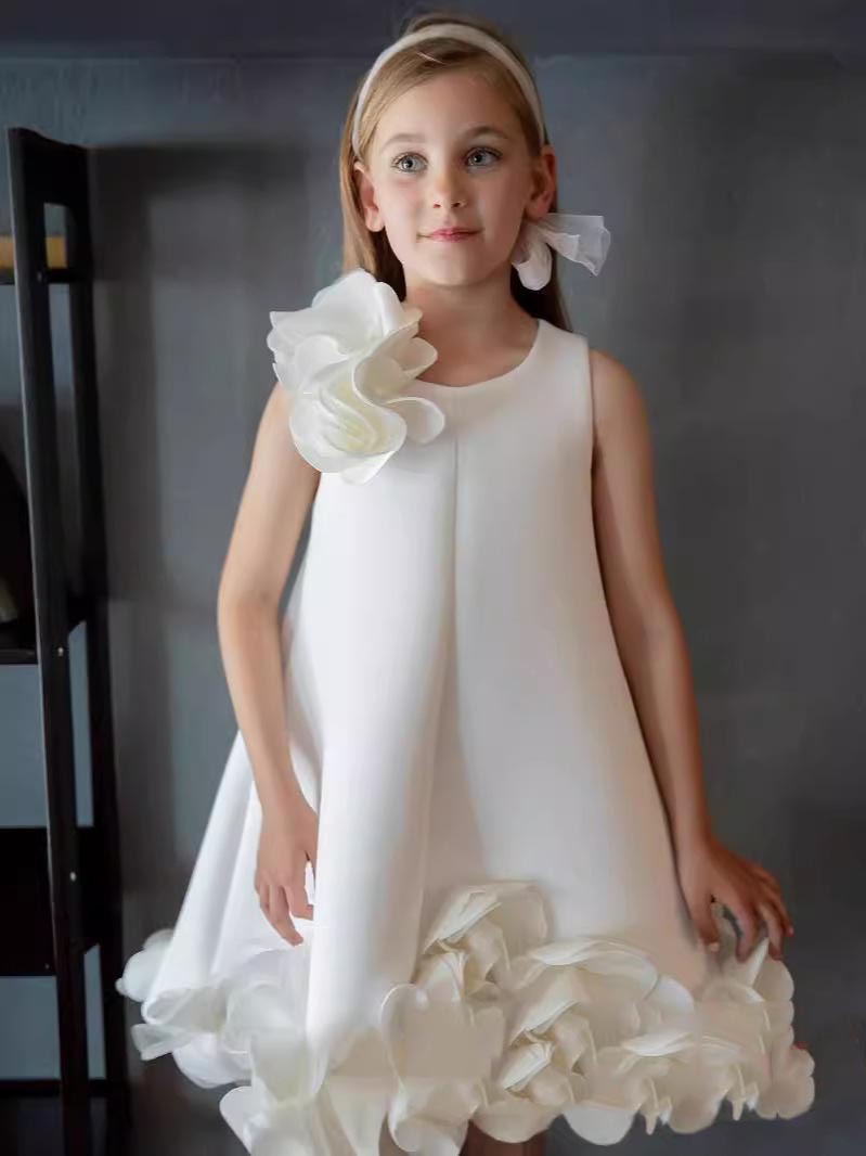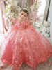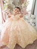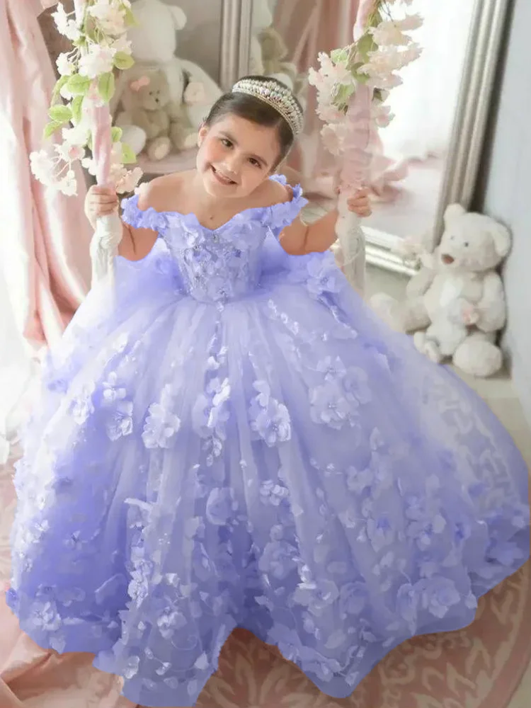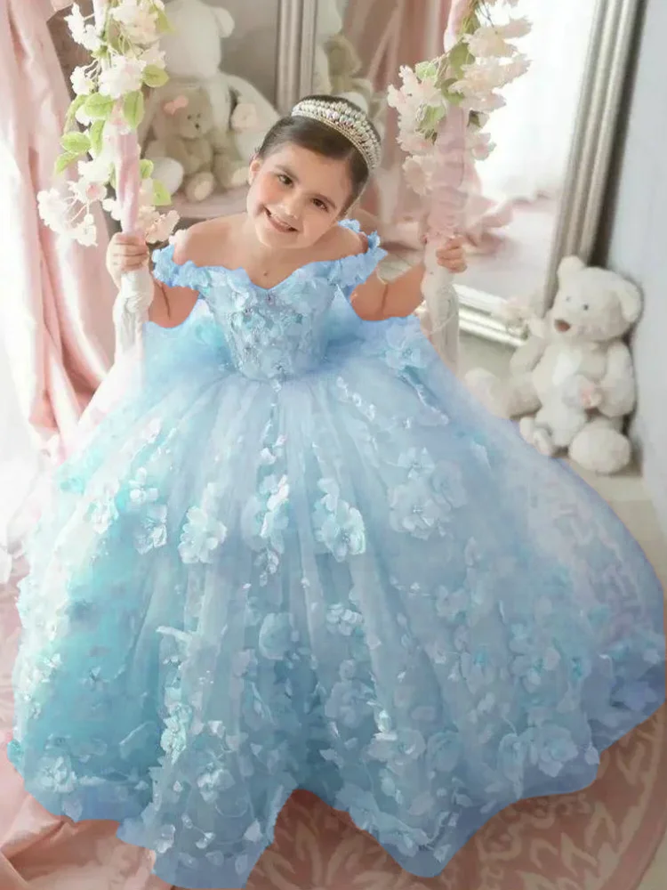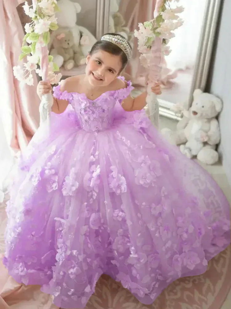 Pink 3d Applique Flower Girl Dress For Wedding Off Shoulder Luxurious Pearls Tulle Child First Eucharistic Birthday Party Dress