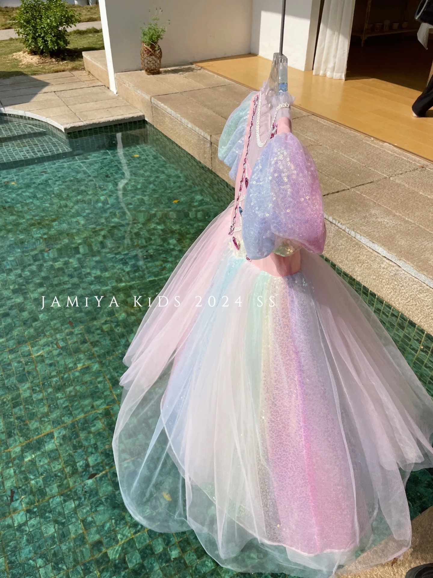 The mid-calf length provides a graceful silhouette, suitable for various occasions including birthday parties.