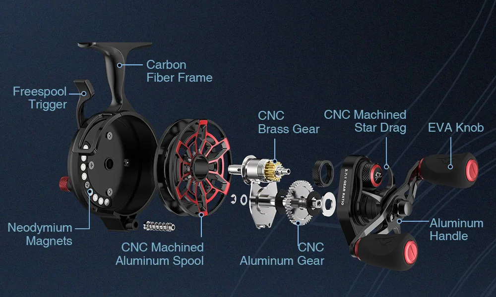 The FreeSpool trigger allows anglers to drop lures beneath the ice quickly once they’ve located their target fish