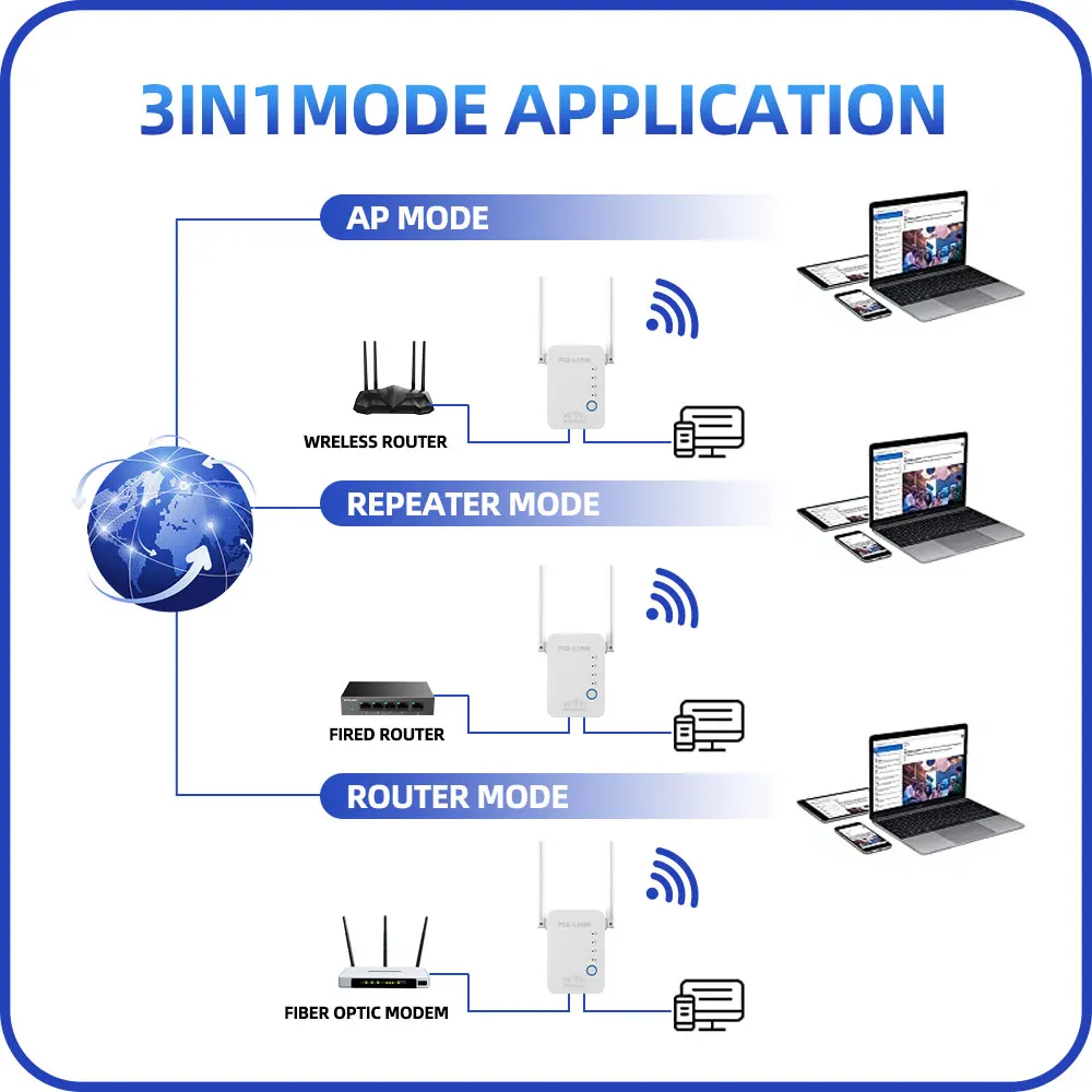 • Standards And Protocols of Wi-Fi 802.11ac :Stay ahead of the curve with the PIX-LINK WR17 Wireless Mini Router WiFi Repeater Access Point Mode Antennas Booster 2.4G Amplifier, which features the latest standards and protocols of Wi-Fi 802.11ac.