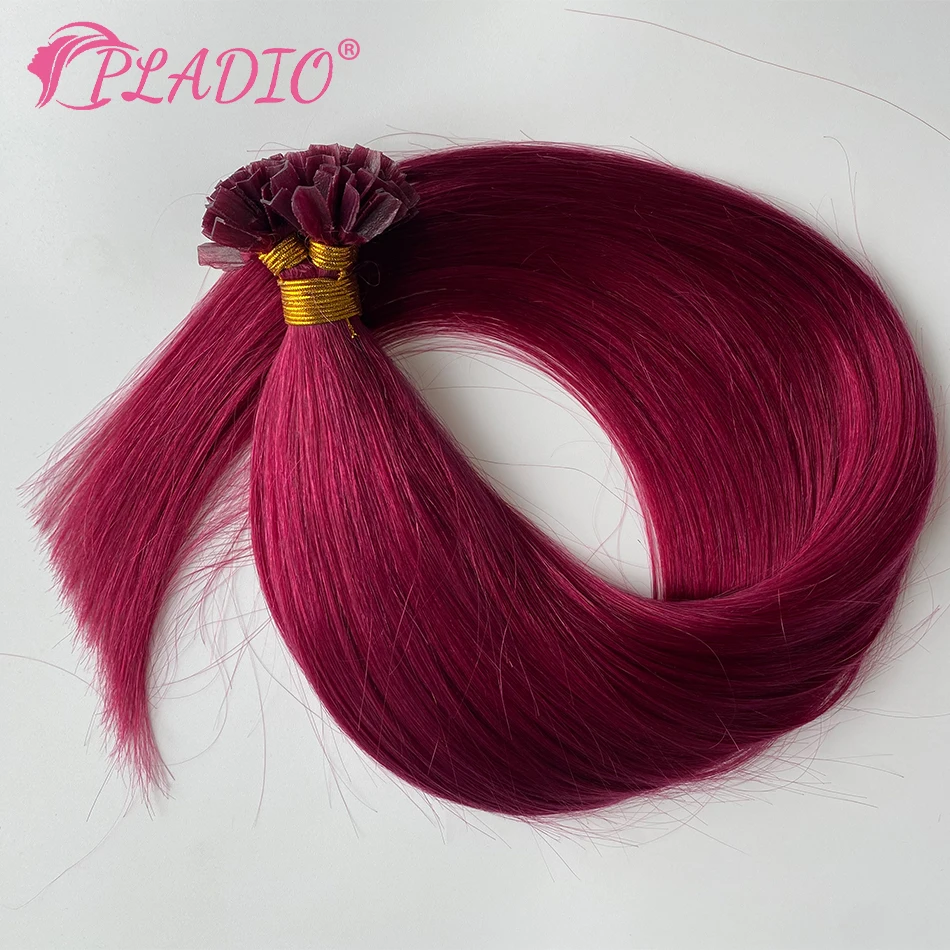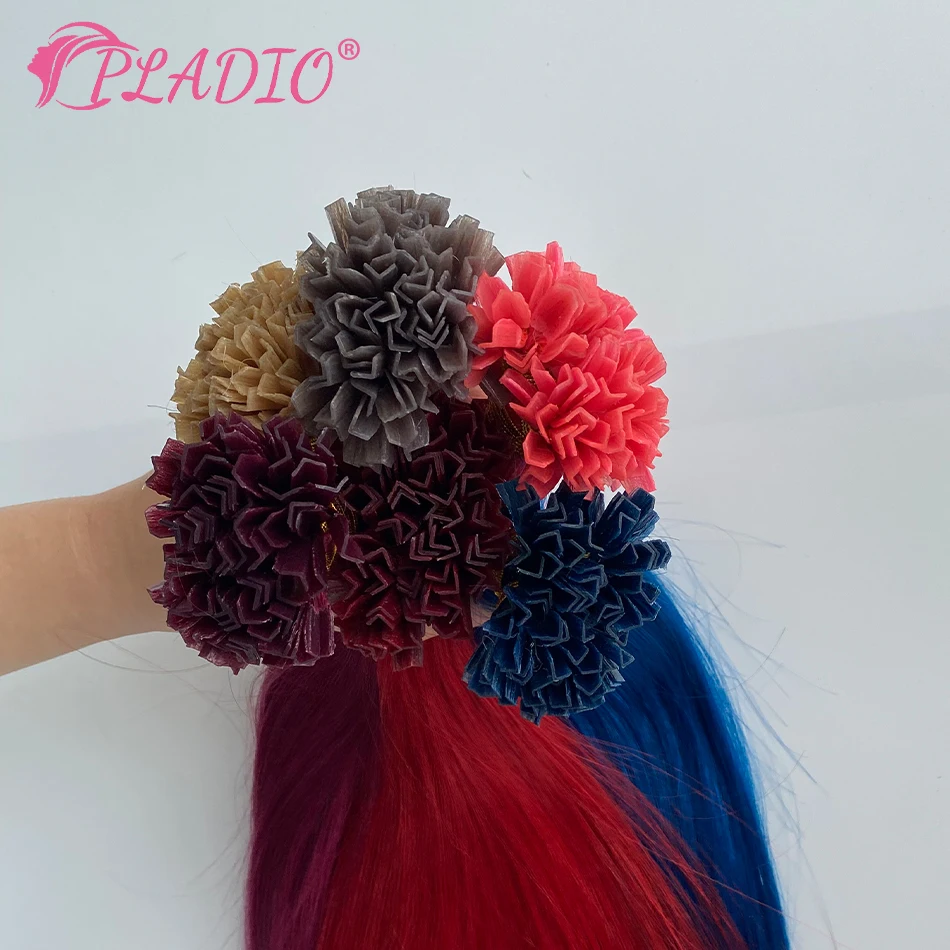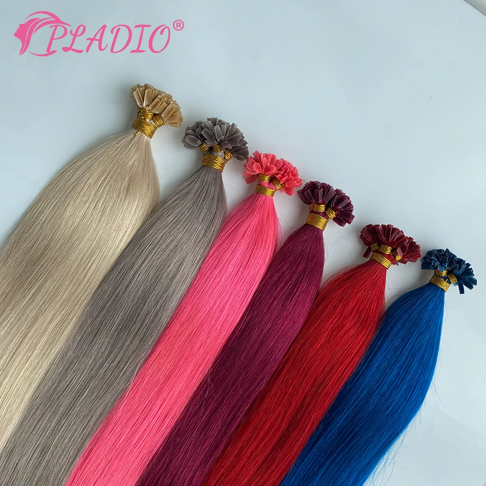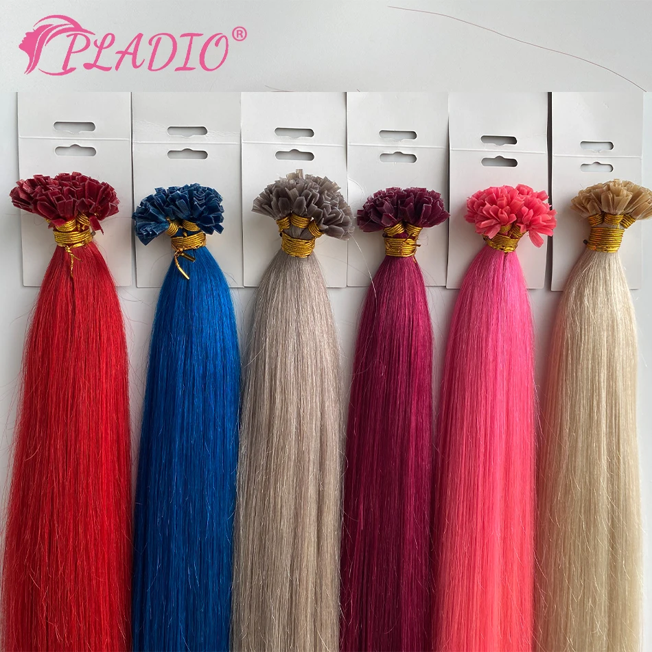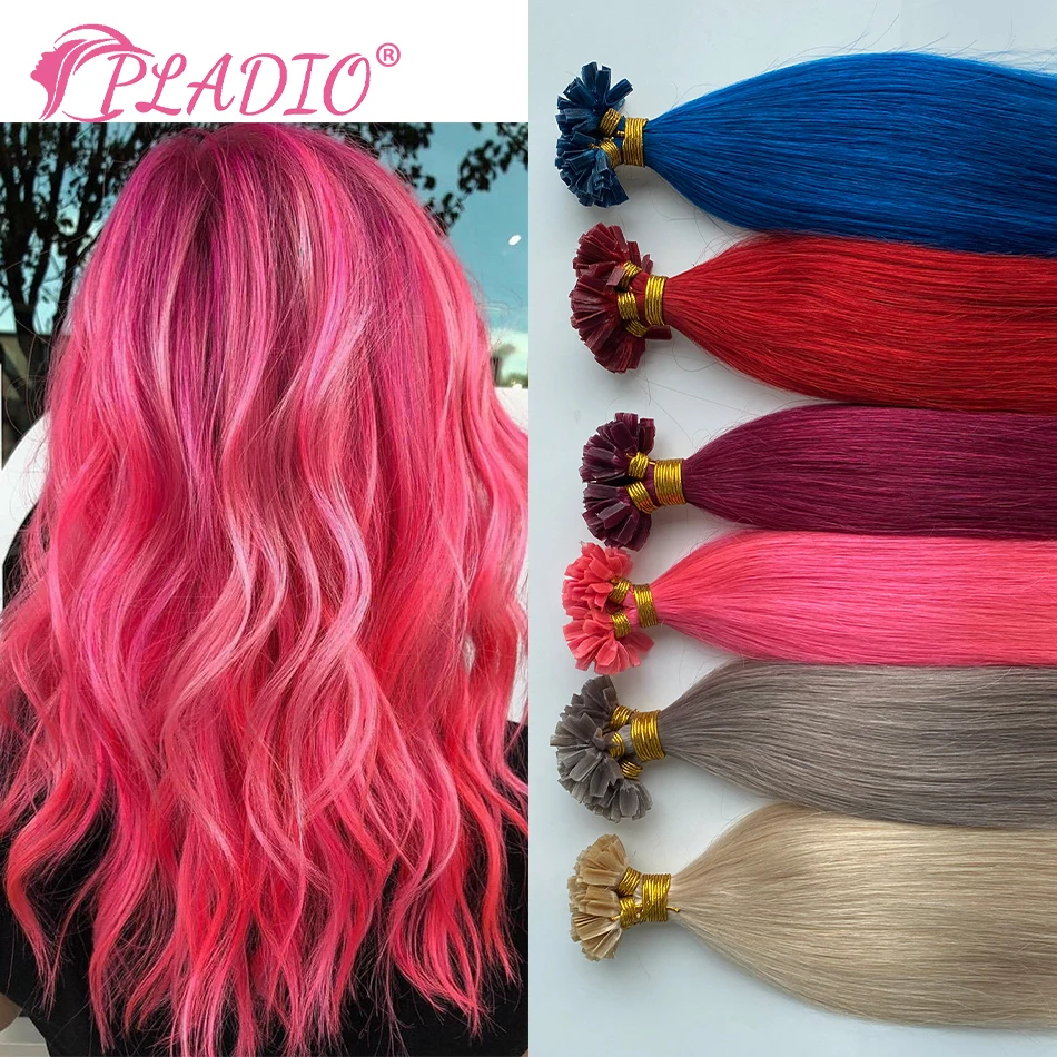 PLADIO V Tip Hair Extensions Human Hair 12″-26″ Remy Hair 100% Human Hair Silky Straight Pink Pre Bonded Keratin Fusion Hair