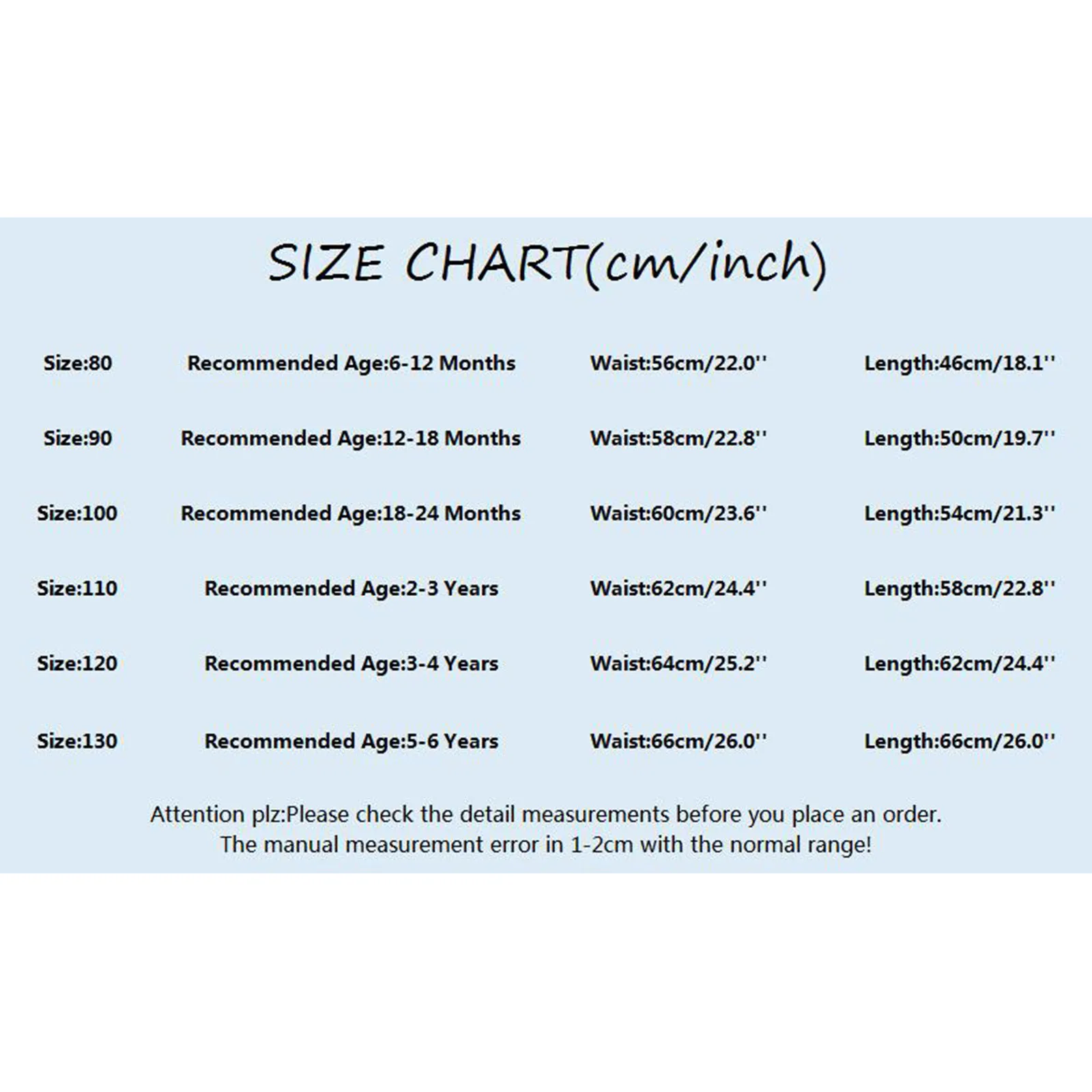 | Size:110 | Recommended Age:2-3 Years | Waist:62cm/24.4” | Length:58cm/22.8” |
