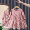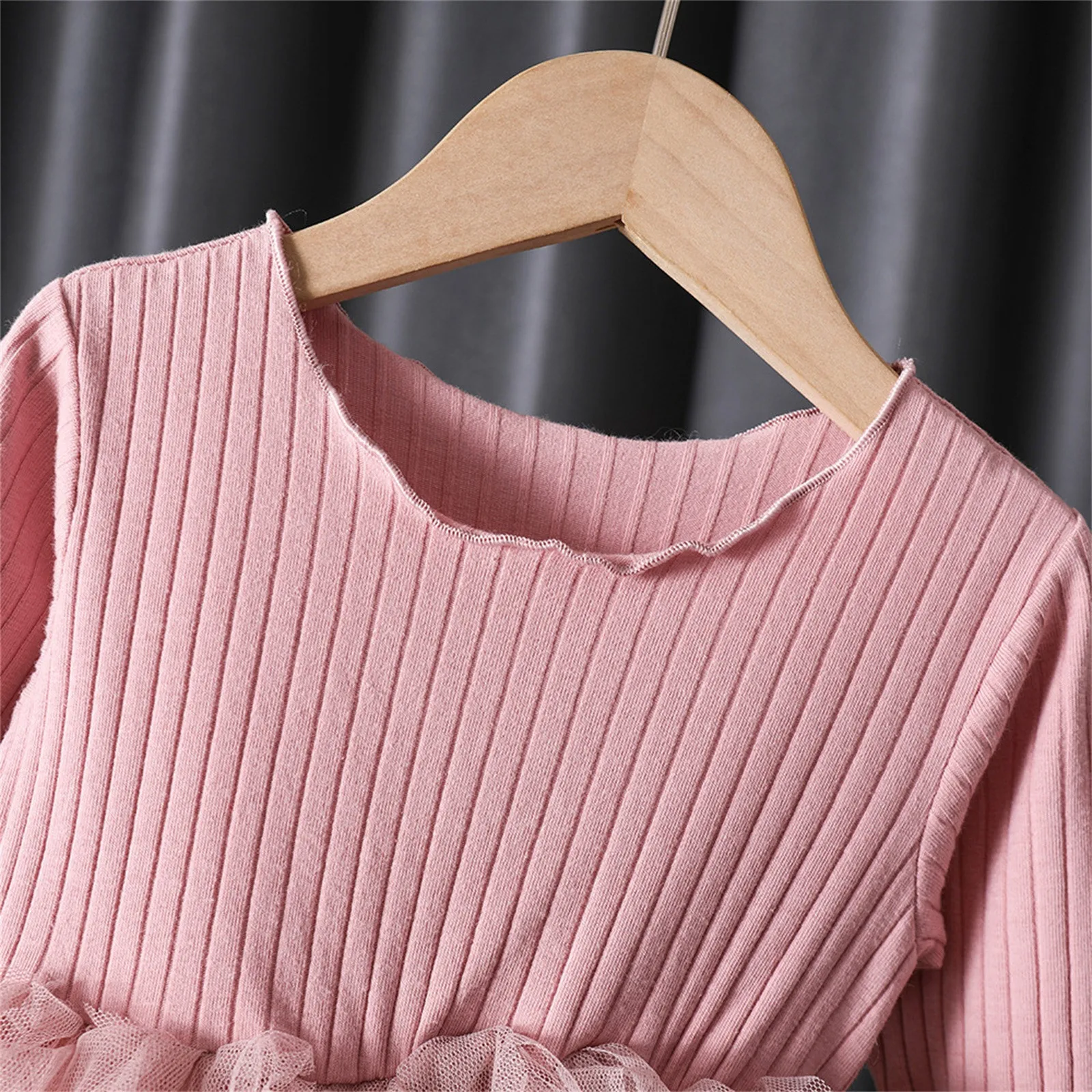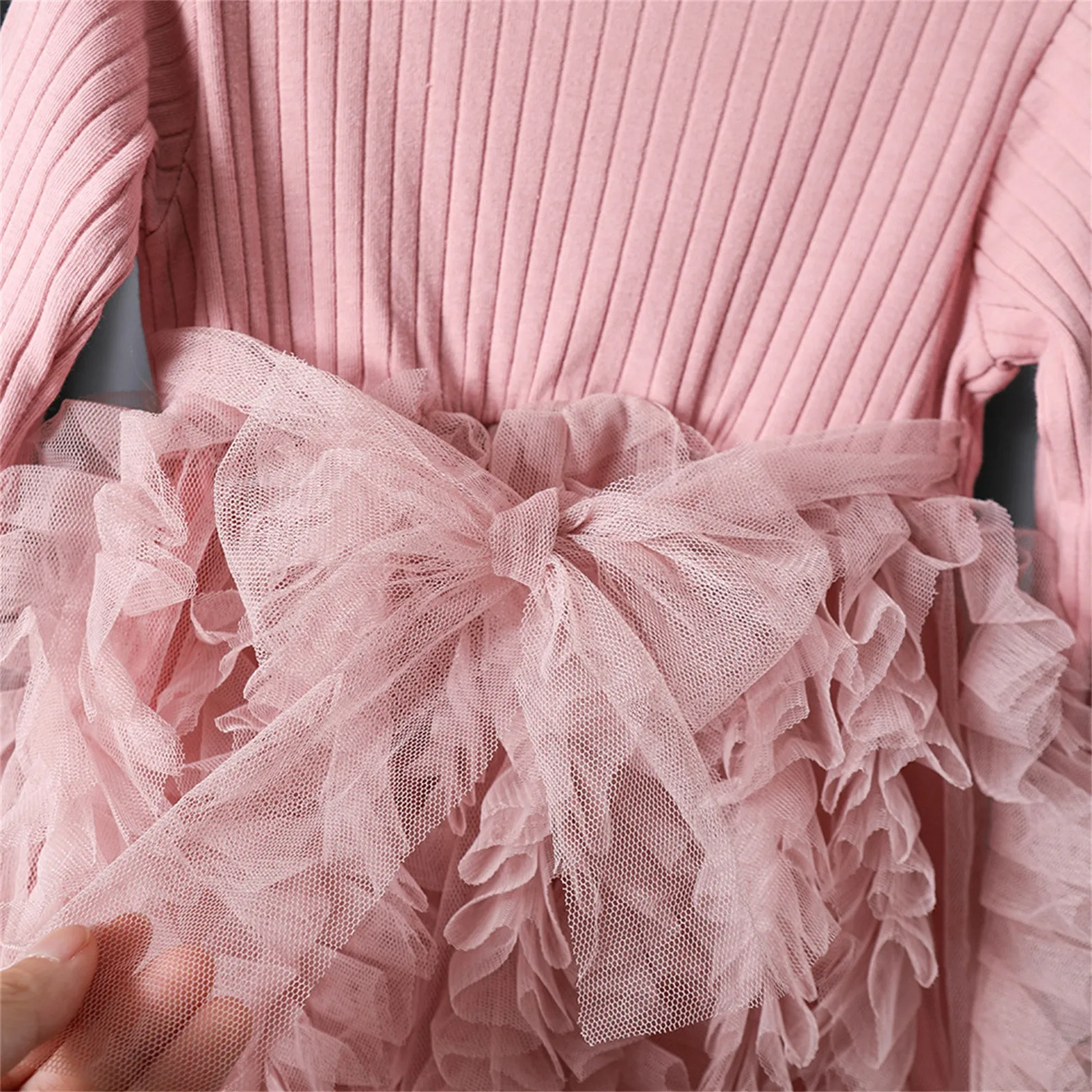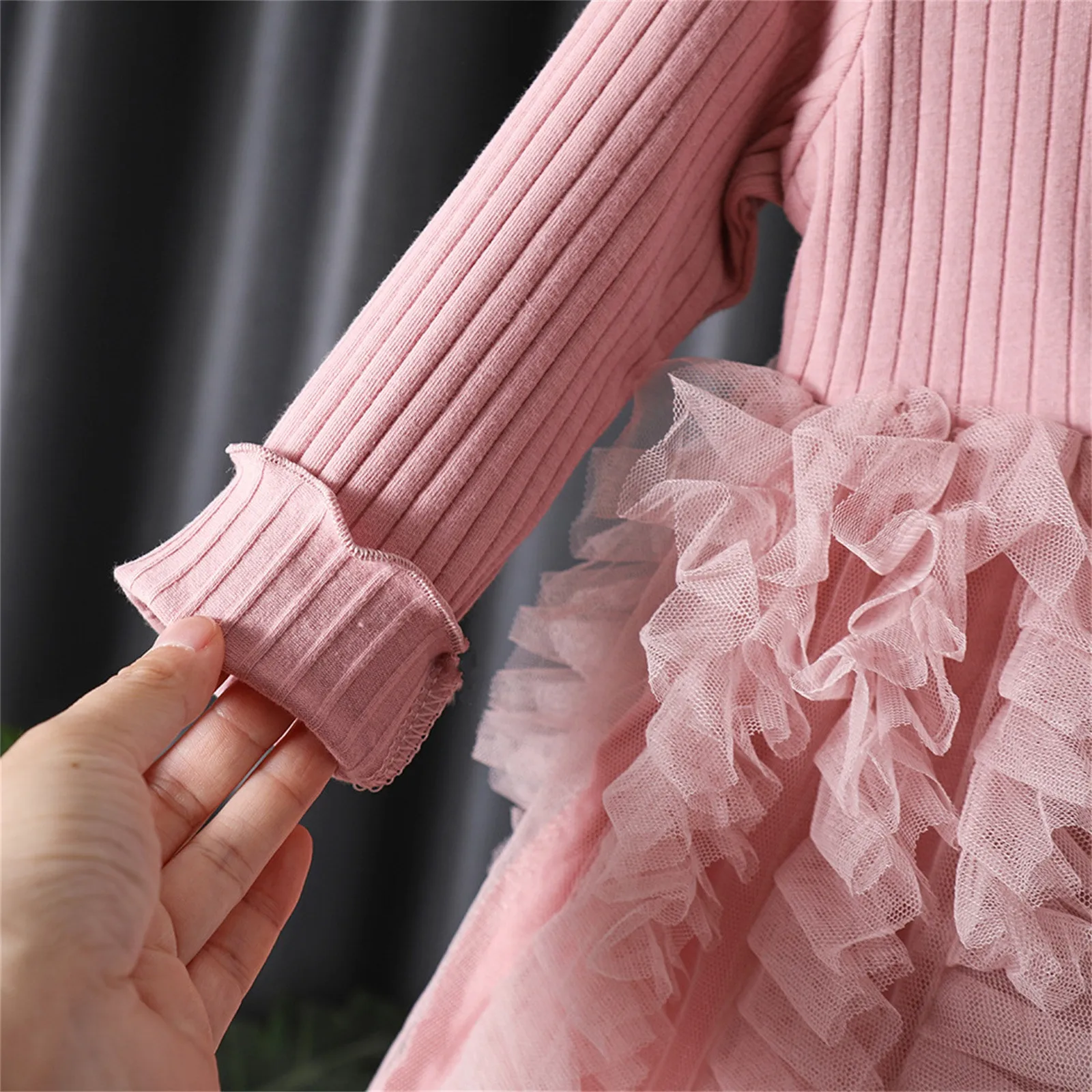 Toddler Kids Baby Girl Long Sleeve Tutu Dress Tulle Knitted Ruffles Wedding Party Dresses