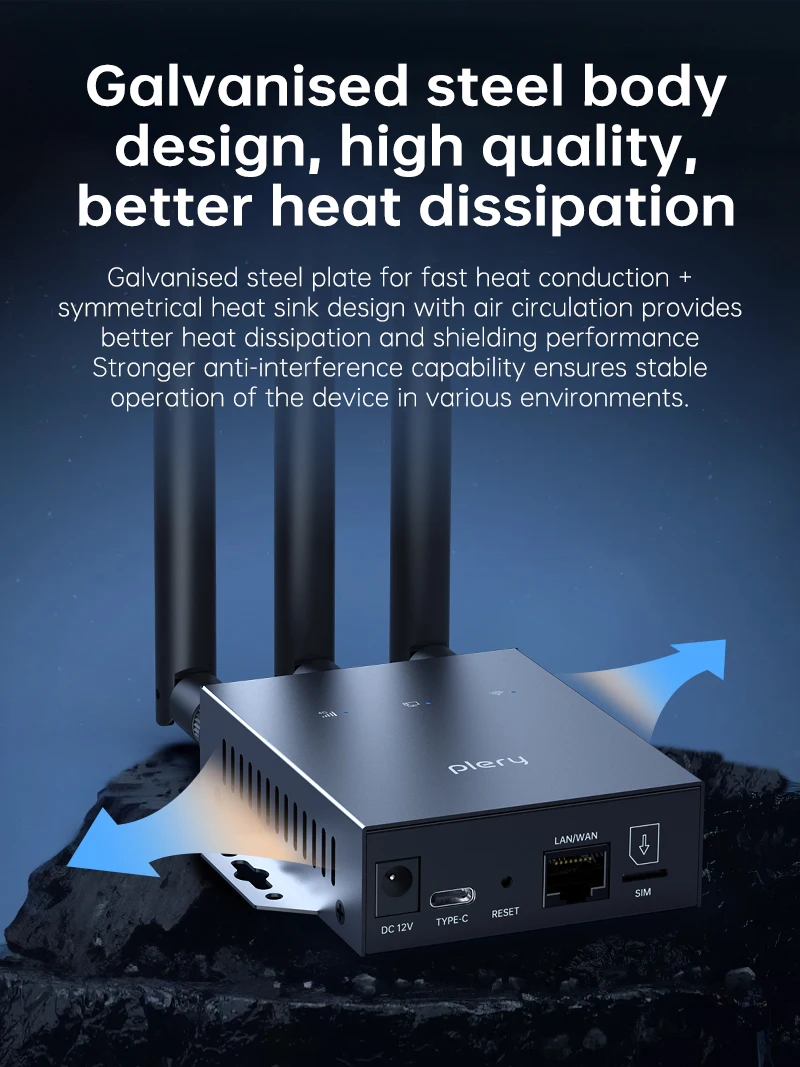 The Plery® R802 4G Router is a high performance network device which capable of providing high-speed Internet connection via 4G wireless networks. It has a built-in 4G LTE modem that can receive and transmit data, meanwhile, forwarding the signal via Wi-Fi tech to surrounding devices such as smartphones, tablets and laptops.