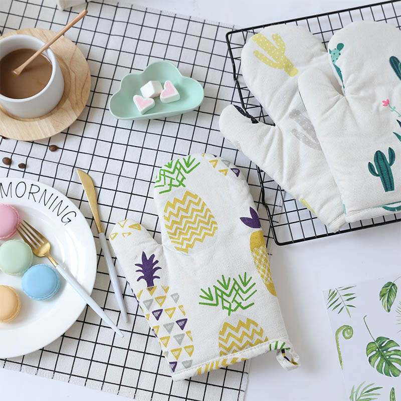 Polyester Cotton Anti-scalding Insulated Pot Oven Gloves Print Household Kitchen Non-slip Cooking Baking Microwave Oven Mitts