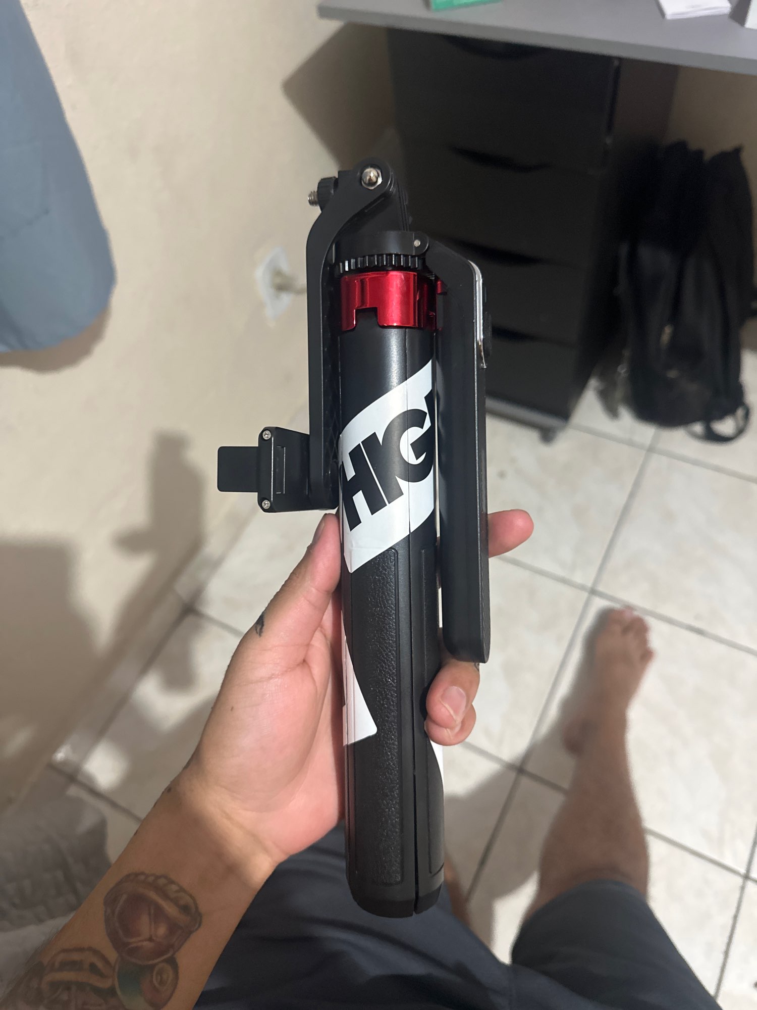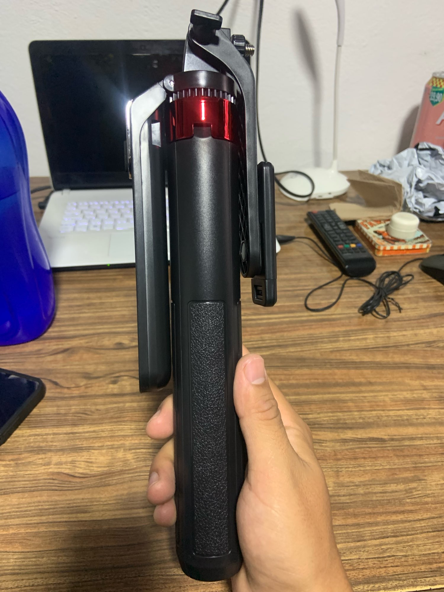 Very good stick, really high, bullets are attached, but I haven't used it yet. There is a thread for twisting the circular lamp. Phone holder is strong. Recommend