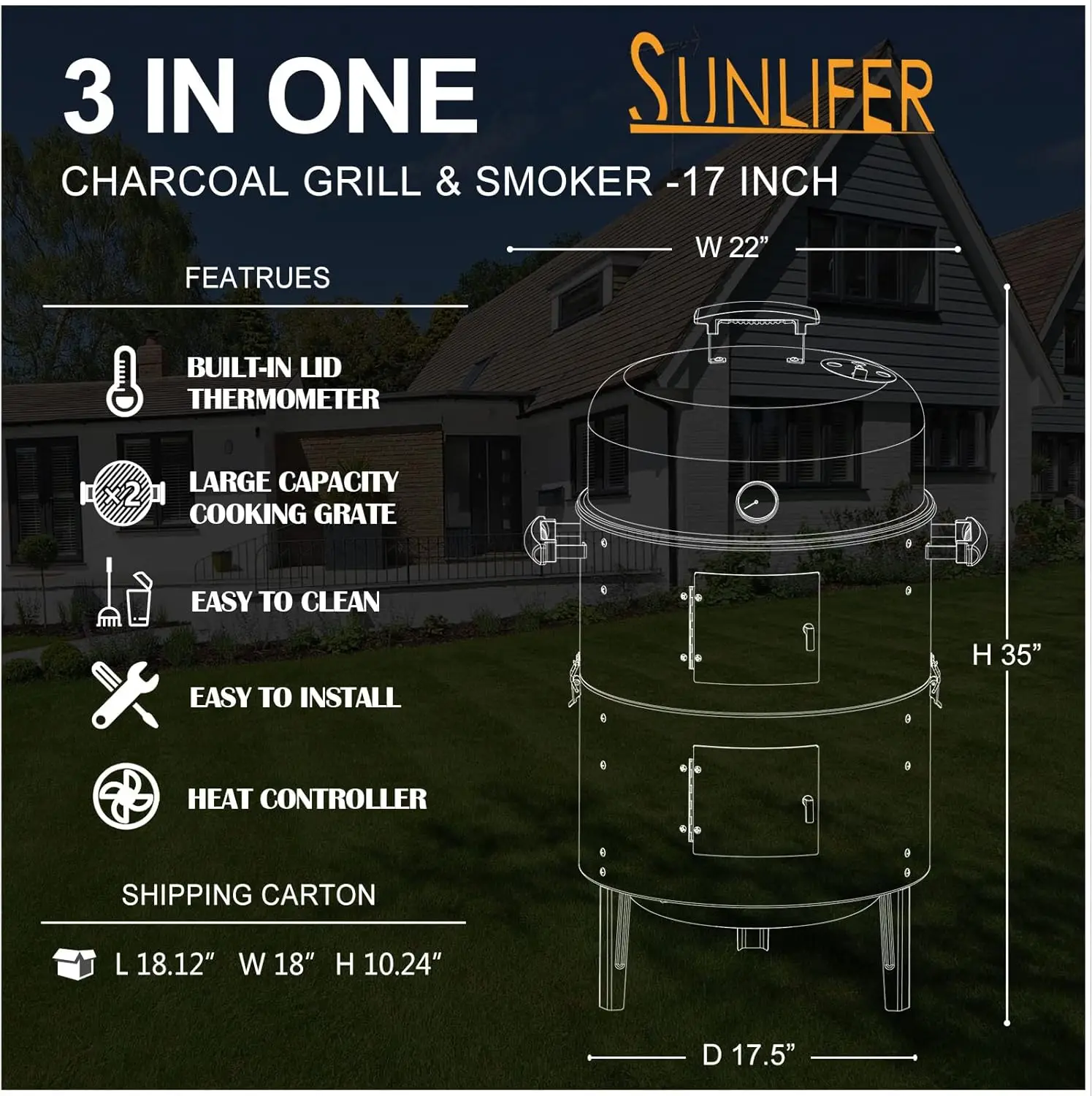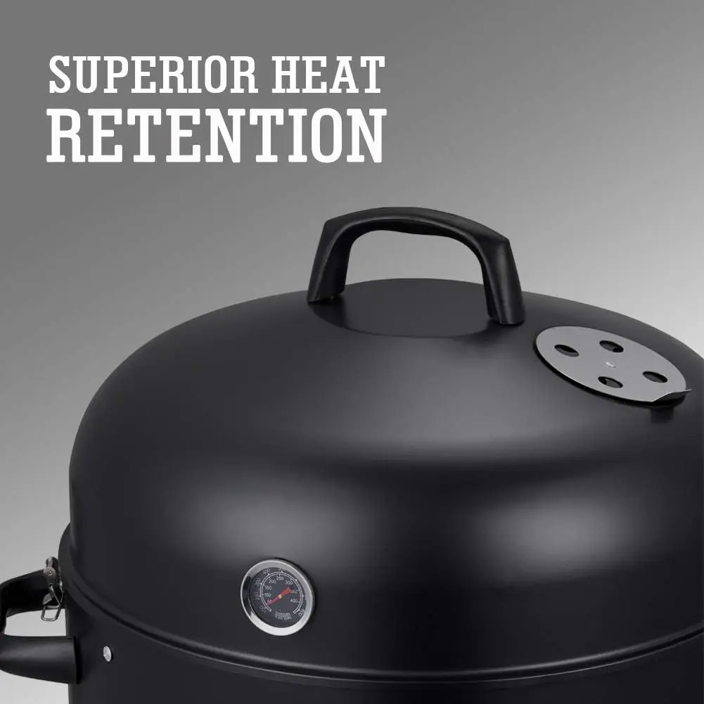 - EASY TO USE WATER SMOKER: Adding with the top lid, this grill not only as a medium size drum charcoal grill, also as a full-set of standing charcoal smoker grill. Just place your meat in the vertical smoker grill, you can enjoy a moist smoked flavor meat with your family and friends