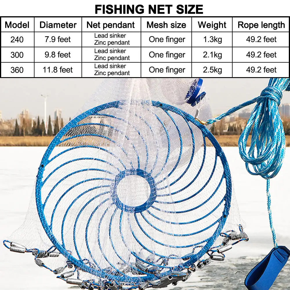 Portable Dip Fishing Net Foldable Outdoor Falling Mesh Flying Disc Upgraded Large Size Fishing Net For Lake Pond Reservoir River