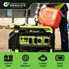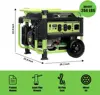- The unit features a 6.6-gallon gas tank and has a run time of 7 hours at half load. This generator features an easy electric start with the option to manually start, the unit via recoil start and a 3-in-1 LED indicator that displays voltage, frequency, and hours. As part of our Atlas Series, this generator features a heavy-duty rugged design.