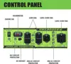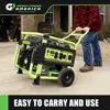 - This model includes 10″ solid wheels and fold-away handles that make moving the unit easy. This unit is equipped with a low oil automatic shutoff feature that protects the engine from damage if oil levels get too low. The unit features a built-in fuel gauge to know when it is time to add more gasoline.