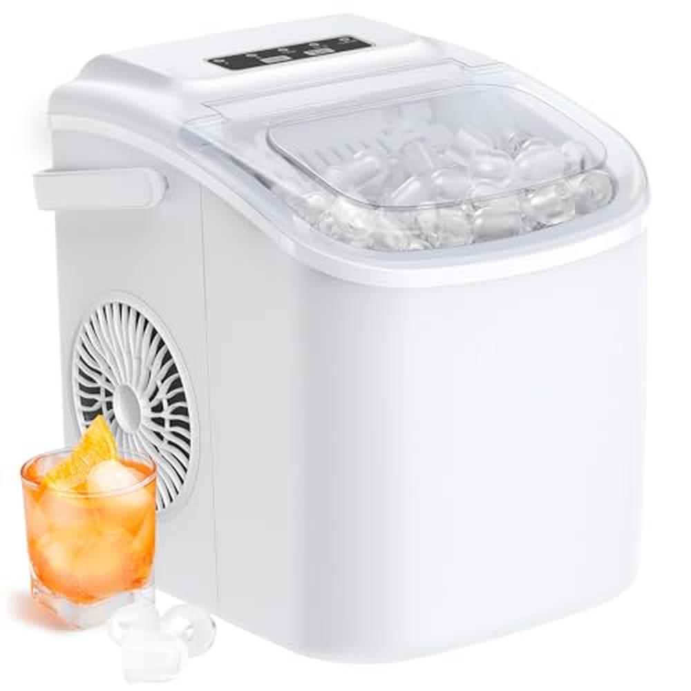 FAST ICE MAKER: The Silonn countertop ice maker only takes 6 minutes to make 9 bullet-shaped ice cubes. Fill the water into the water tank, maximum ice capacity can reach 26 pounds in 24 hours.