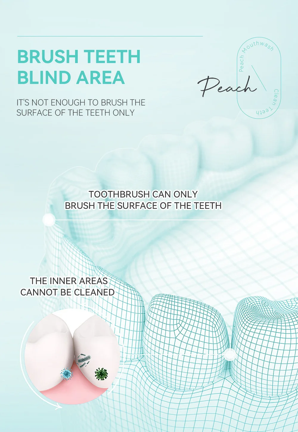 The inner descaling component goes deep into the blind area of brushing and the remaining tooth area needs to be washed with mouthwash