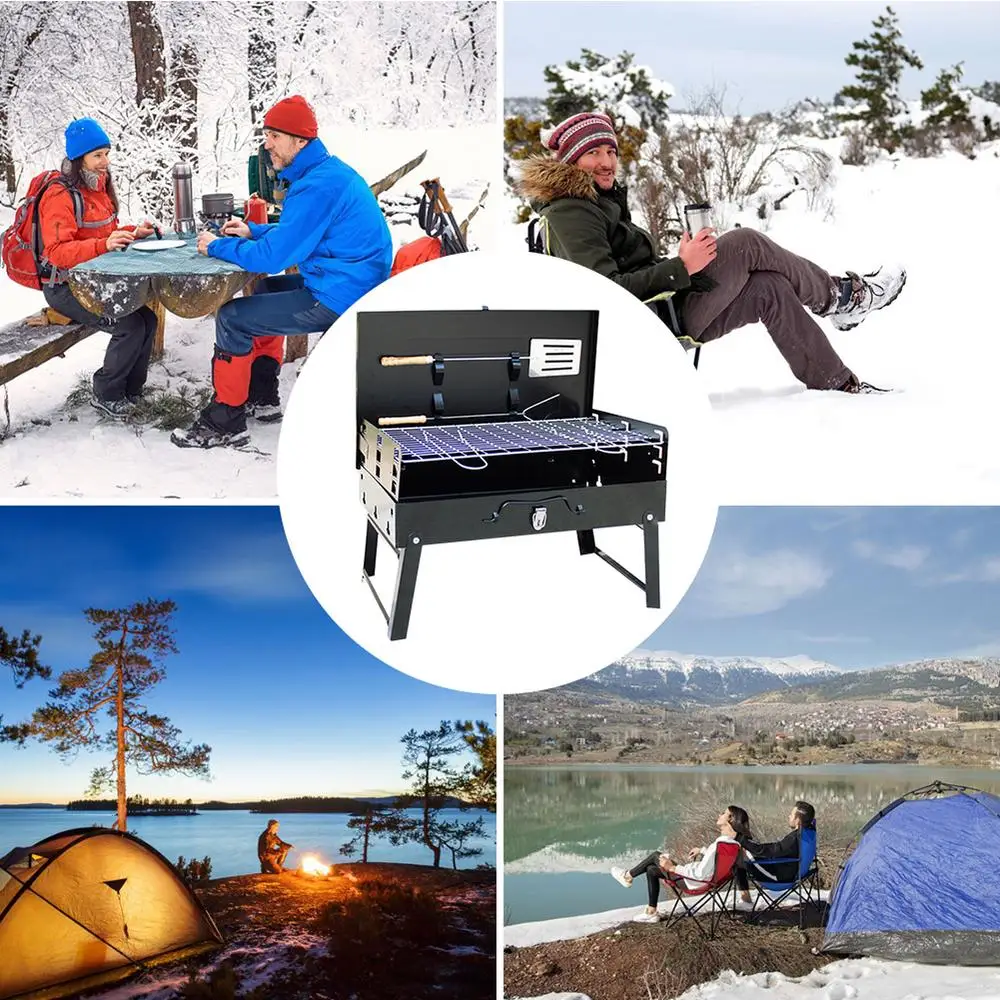 Portable Stove Folding Box Type Stainless Steel Outdoor Courtyard Barbecue Charcoal Grill BBQ Tools Barbecue Oven Supplies