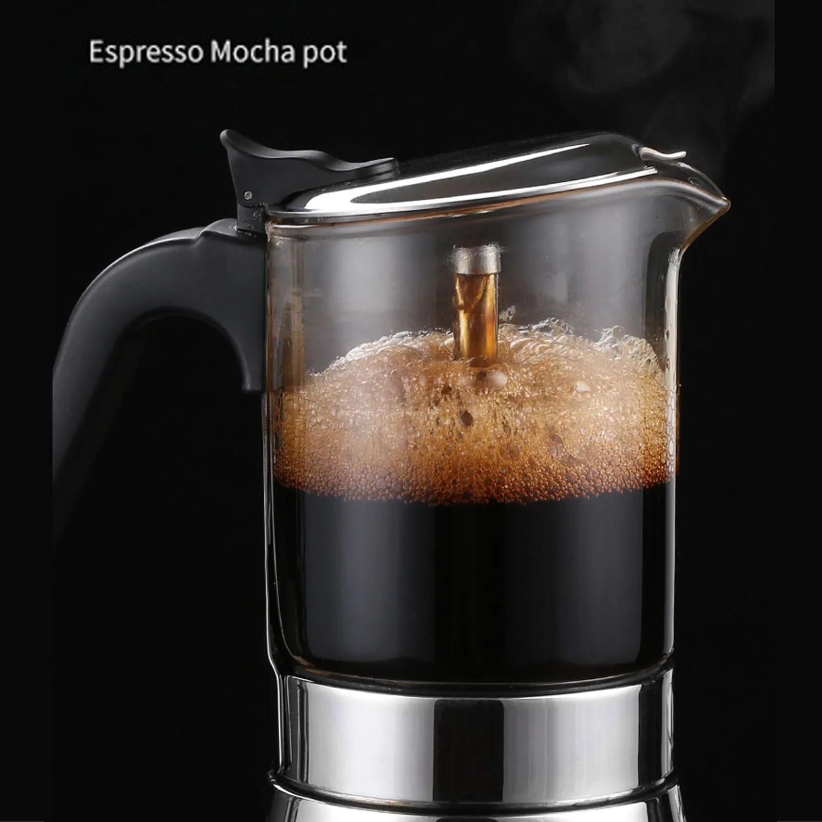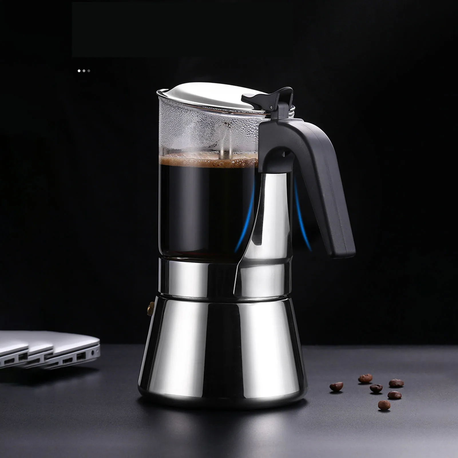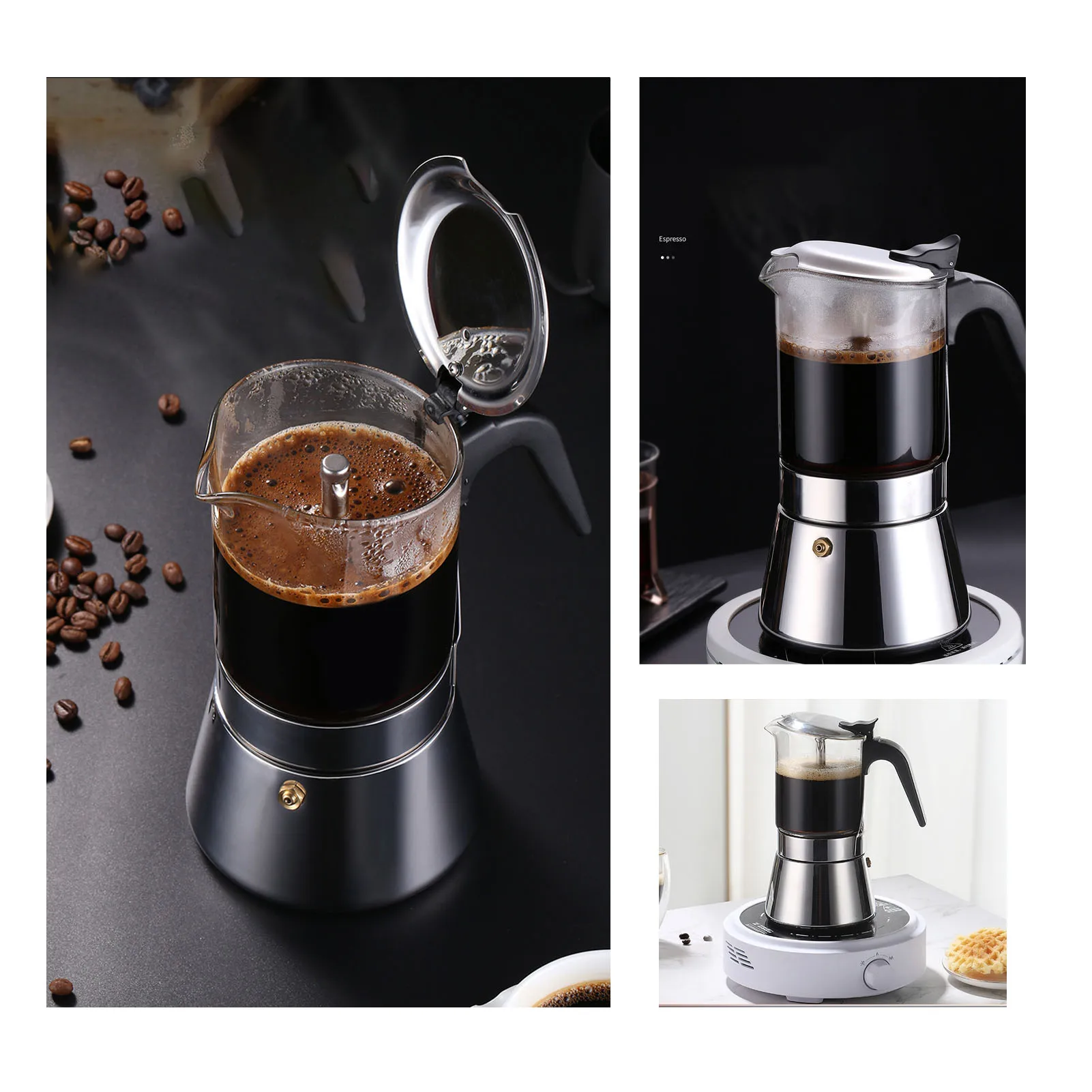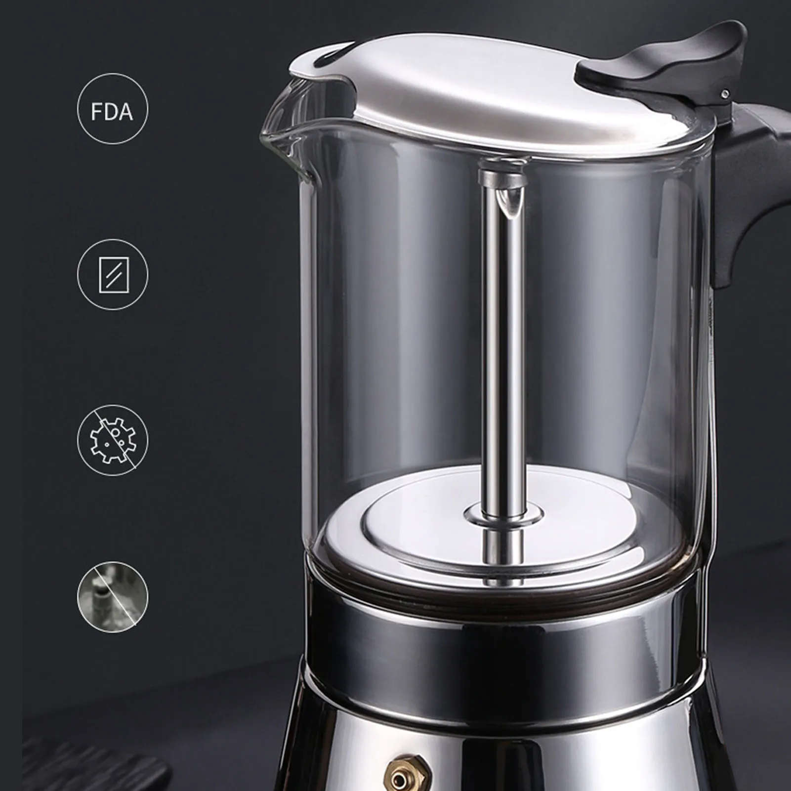Pot Crystal Glass Top Stainless Steel Stovetop Pot Italian Coffee Maker for 4 Cups Italian coffee machine