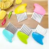 Wave onion potato slices wrinkled french fries salad corrugated cutting chopped potato slices knife