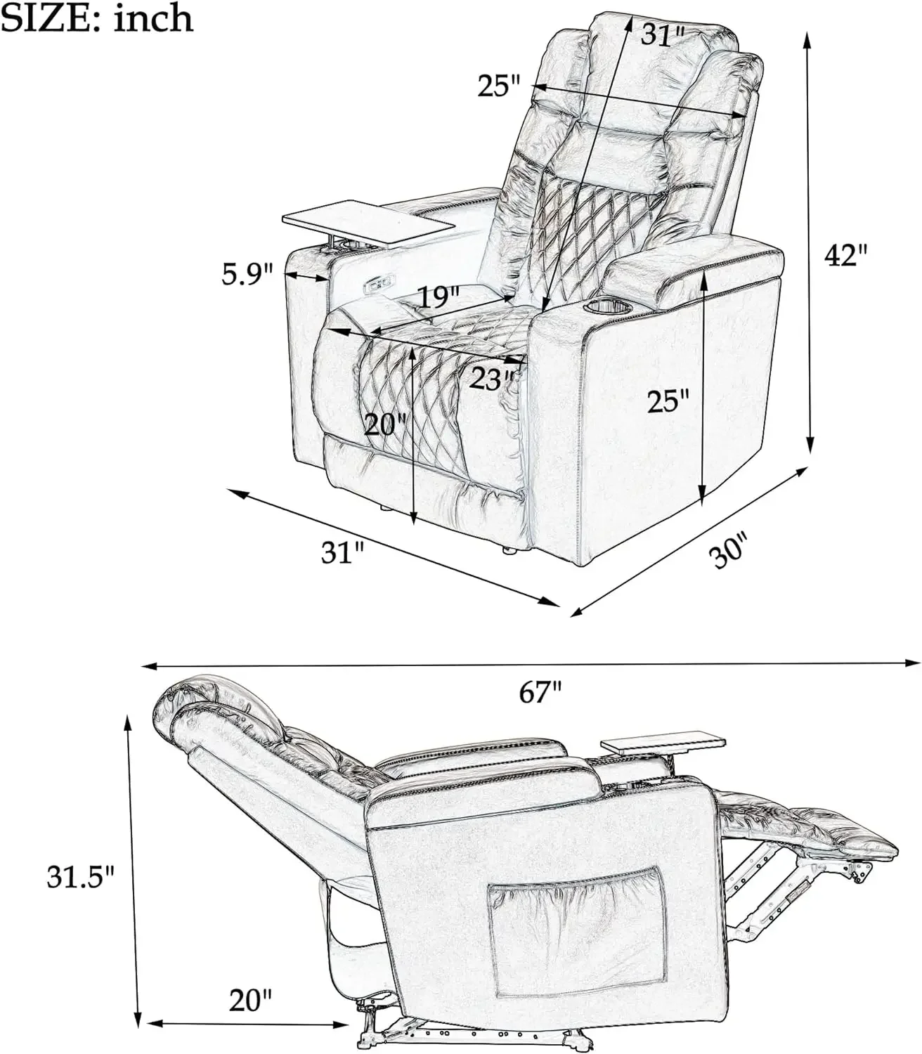 Electric Recliner Chair with USB Charge Port, 360 Swivel Tray Table, Hand in-Arm Storage