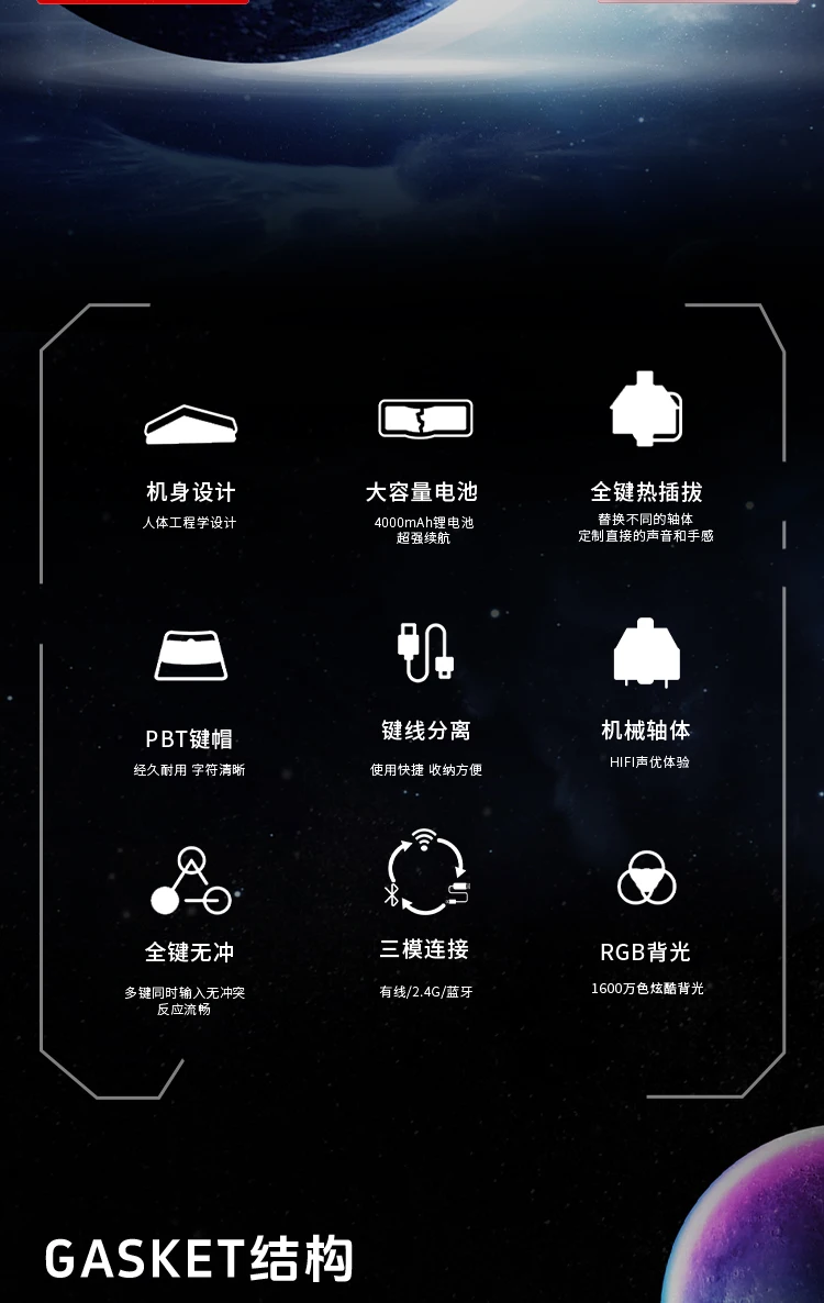 Connection method: TYPE-C/Bluetooth/2.4G