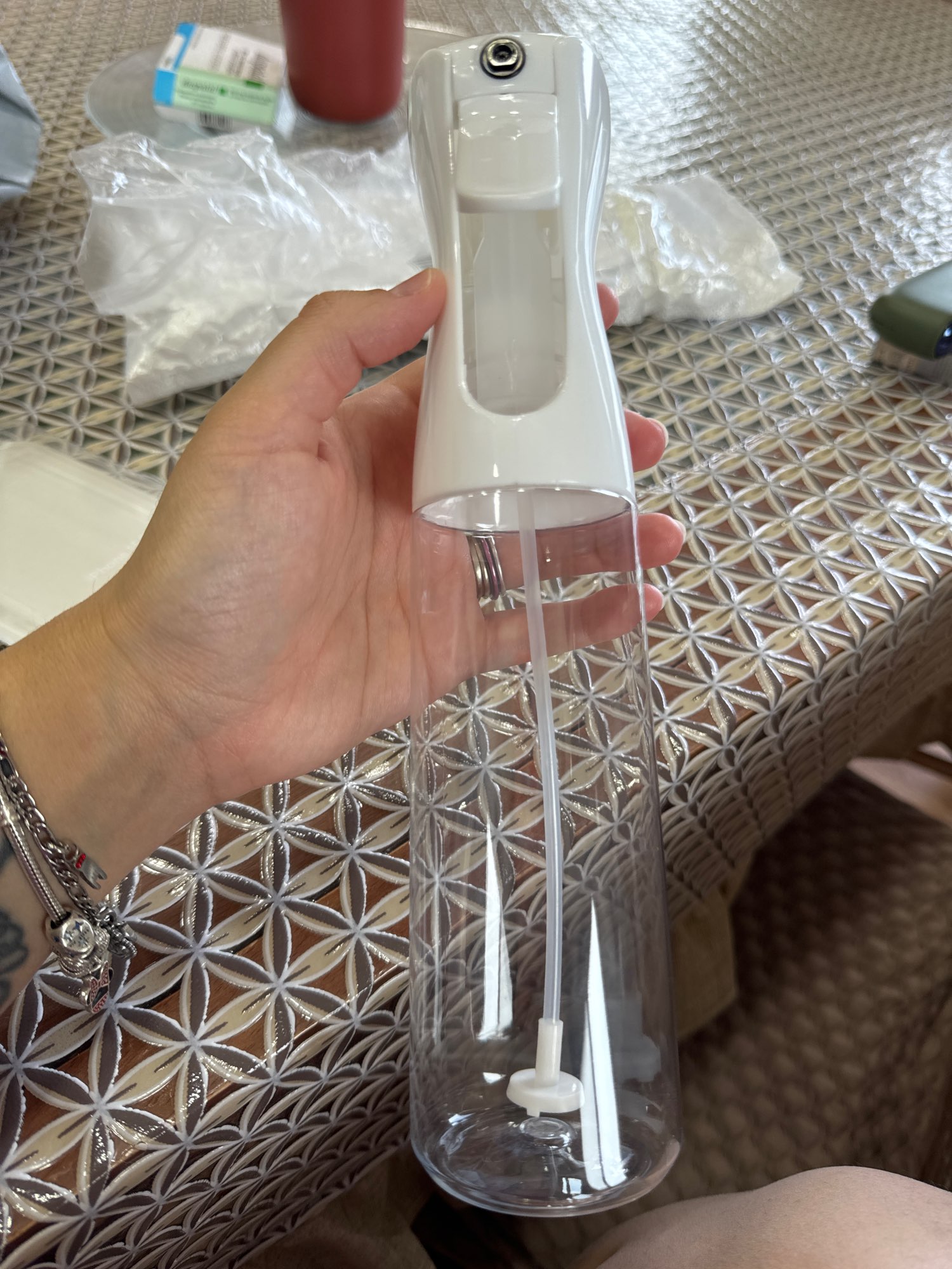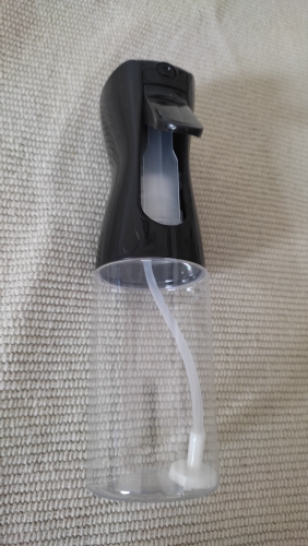 A bottle made of cheap plastic, does not spray, but hits with a directed stream.