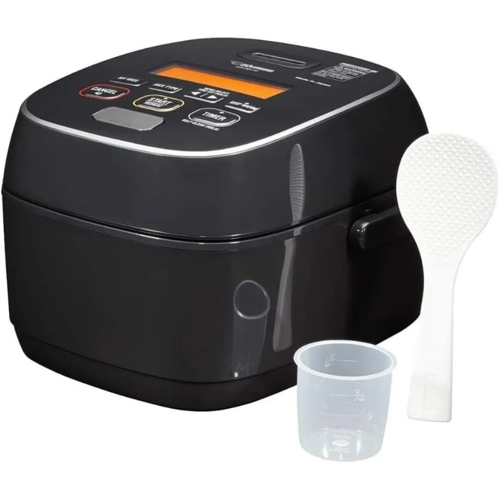 - Included components: Pressure Induction Heating Rice Cooker, Rice Spatula, Self-Standing Spatula Holder, and Measuring Cup