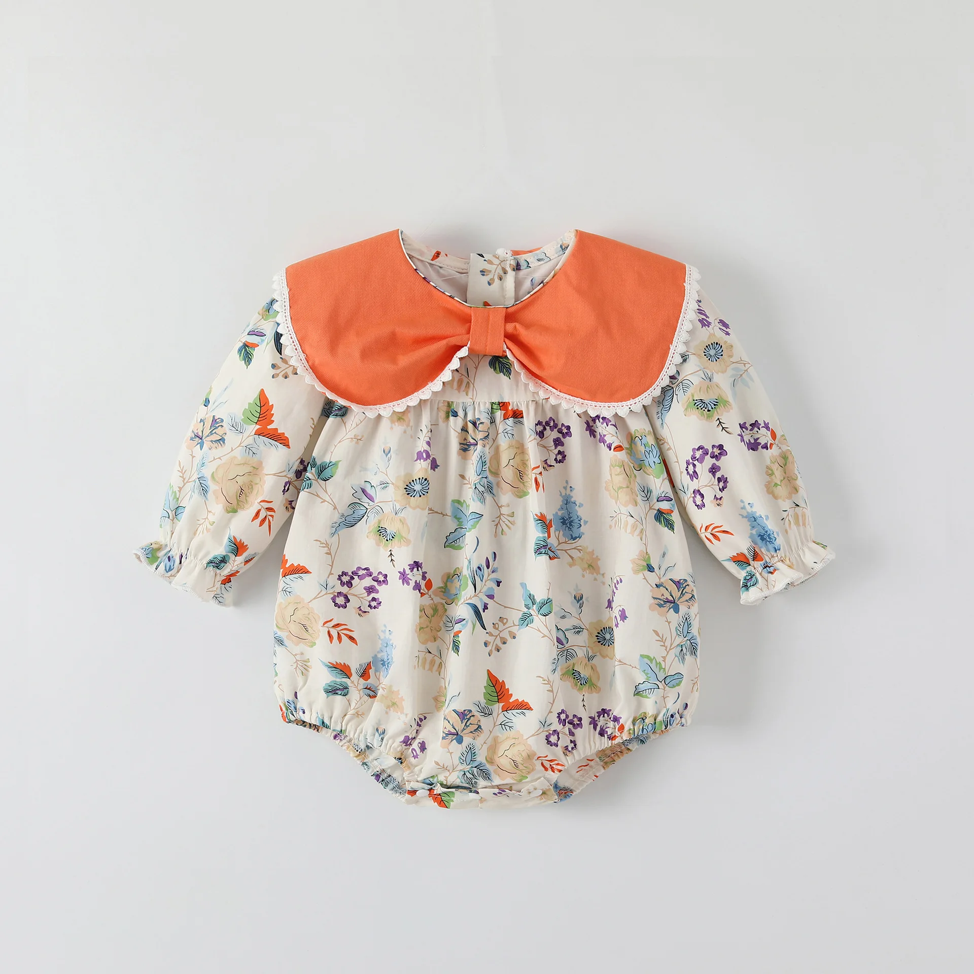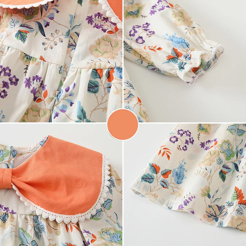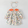 Princess Dress 2024 Spring Korean Kids Girls Dress Cotton Long Sleeve Knotbow Newborn Girls Rompers Toddler Baby Girls Dress