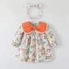 Princess Dress 2024 Spring Korean Kids Girls Dress Cotton Long Sleeve Knotbow Newborn Girls Rompers Toddler Baby Girls Dress