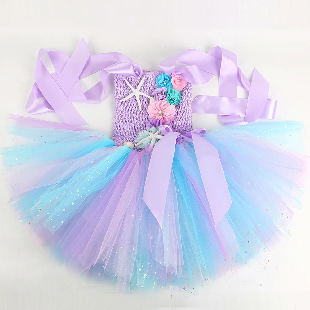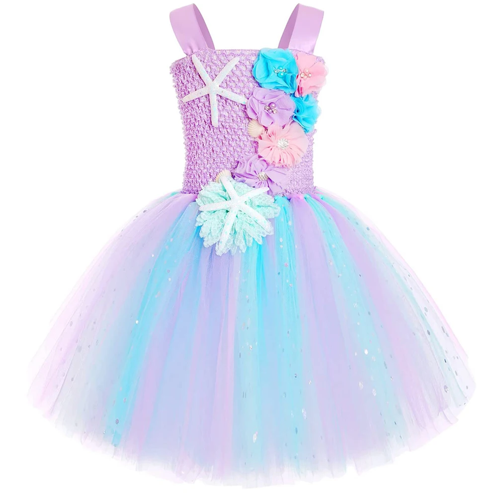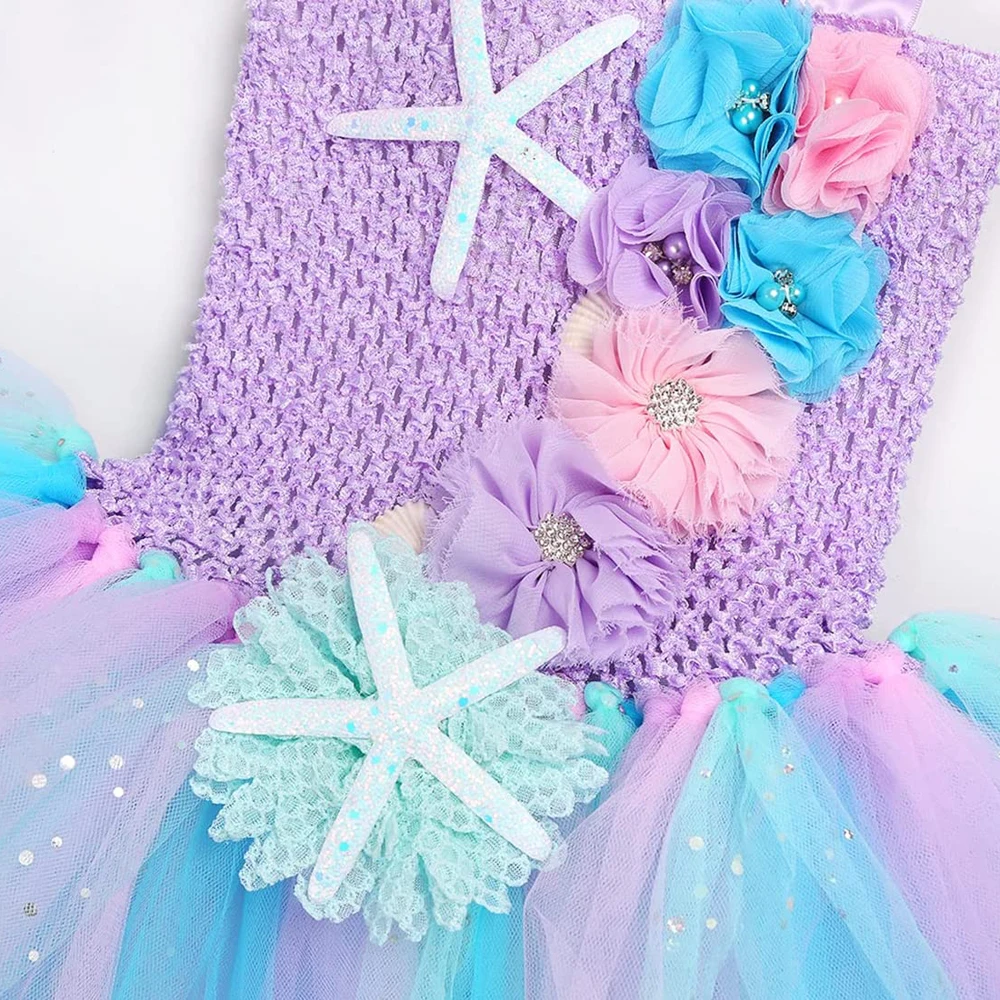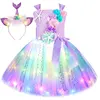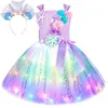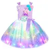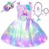 Princess Mermaid Dress For Girls Led Light Up Ocean Themed Birthday Party Tutu Dress Clothes Halloween Costume For Kids Vestidos