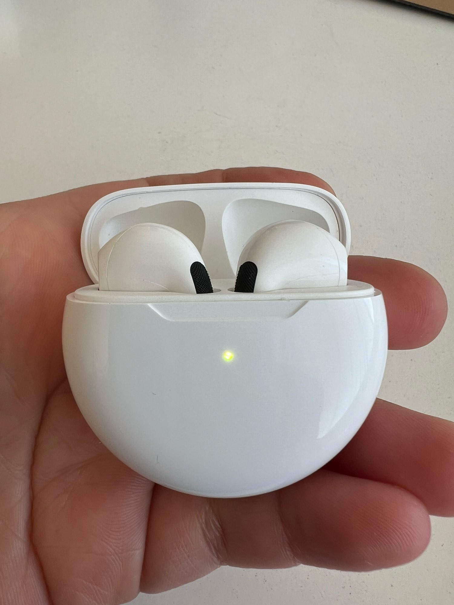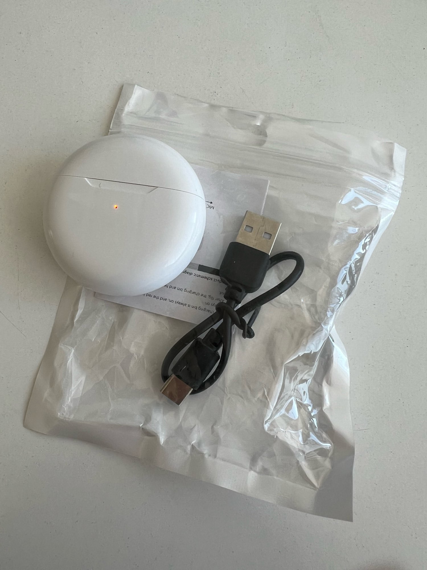 Pro 6 Wireless Bluetooth Headset 5.0 White The good thing is that it is a product that is sold in Korea The reviews are not bad, but when connecting with the phone I suffered from a lot of error. Design and performance are normal. It's hard to discuss sound quality. The charging line is short but compatible with the existing Samsung phone 3C The body connects the charging line, so the light comes in .... Not bad overall She looks neat. It's 120% for the price