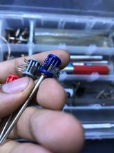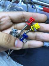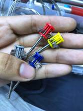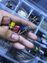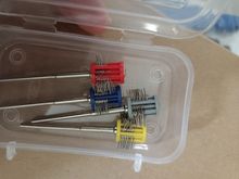 Is as shown in the image. I asked for fine tips and I am waiting to try it. The red plastic does not look very good quality but perhaps it is resistant. Will remark